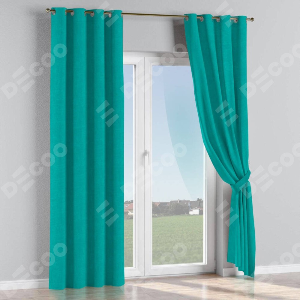Комплект прямых штор, от производителя «Cortin», пошиты из ткани канвас бирюзовый, артикул ткани v-1048. Данная модель пошита на люверсах, комплектуется на выбор круглым карнизом и подходит для монтажа на стену или потолок. Прямые шторы на люверсах шьются по стандарту с коэффициентом 1/2 (на 100 см. ширины проёма 200 см. ширины ткани), отличительным преимуществом данной модели является простой способ монтажа. Достаточно повесить ее на трубу и штора готова!