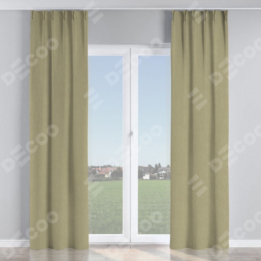 Комплект прямых штор, от производителя «Cortin», пошиты из ткани канвас латте, артикул ткани v-12490. С изнаночной стороны в верхней части штор пристрачивается шторная лента с декоративными складками «Кустик». Для создания элегантных складок прямые шторы шьются по стандарту с коэффициентом 1:2 (на 100 см. ширины проёма 200 см. ширины ткани).
