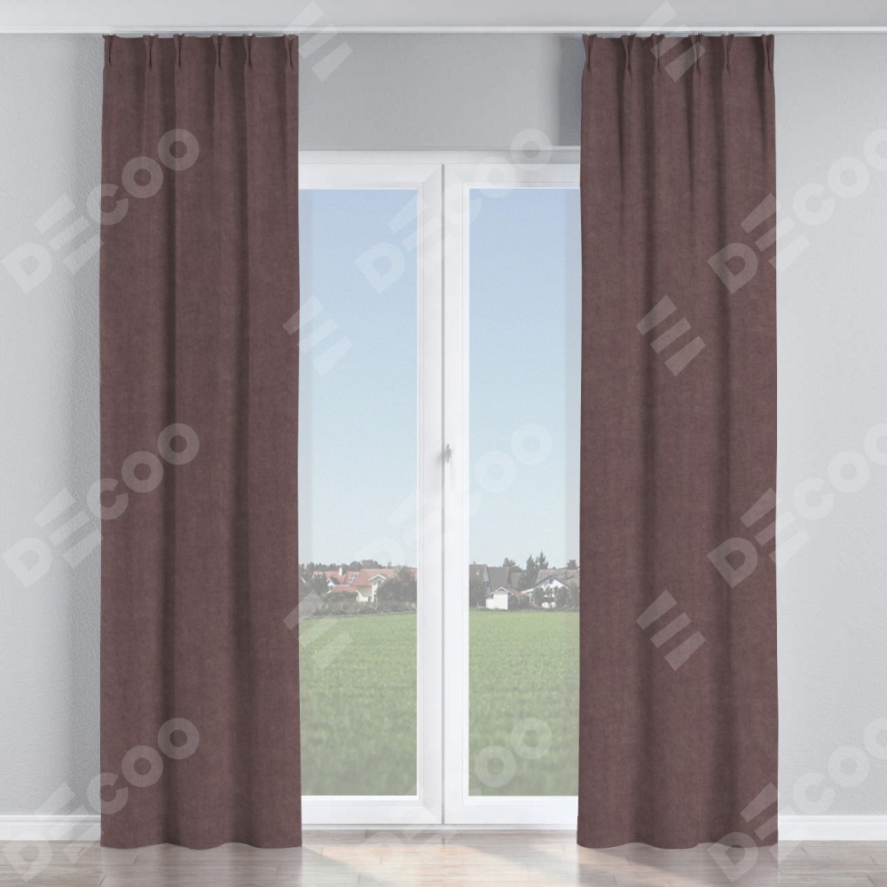 Комплект прямых штор, от производителя «Cortin», пошиты из ткани канвас махагон, артикул ткани v-37. С изнаночной стороны в верхней части штор пристрачивается шторная лента с декоративными складками «Кустик». Для создания элегантных складок прямые шторы шьются по стандарту с коэффициентом 1:2 (на 100 см. ширины проёма 200 см. ширины ткани).