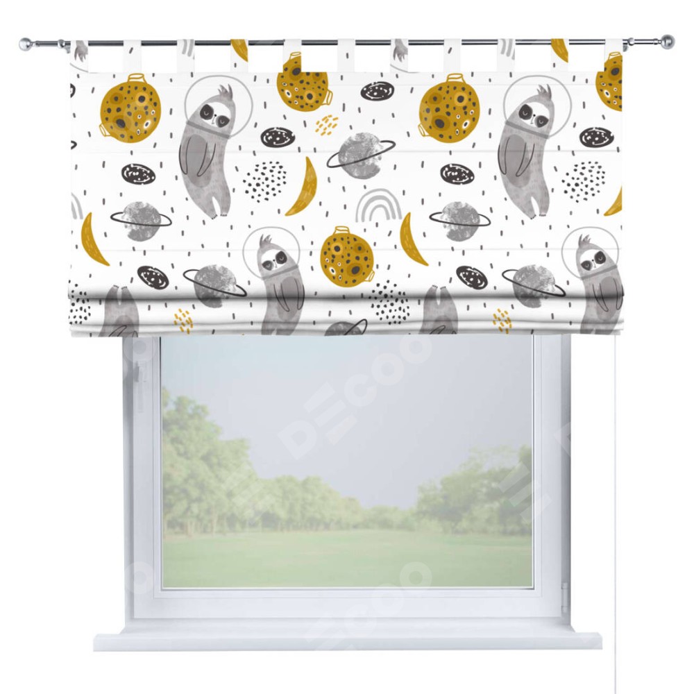 Римская штора производителя «Cortin», используется для проёма, пошита из ткани блэкаут с нанесением сублимационной печати «Ленивец в шлеме». Данная модель пошита на петлях, комплектуется на выбор круглым карнизом и подходит для монтажа на стену. Римская штора на петлях имеет простую систему регулировки высоты, отличительным преимуществом данной модели является простой способ монтажа. Достаточно повесить ее на трубу и штора готова!