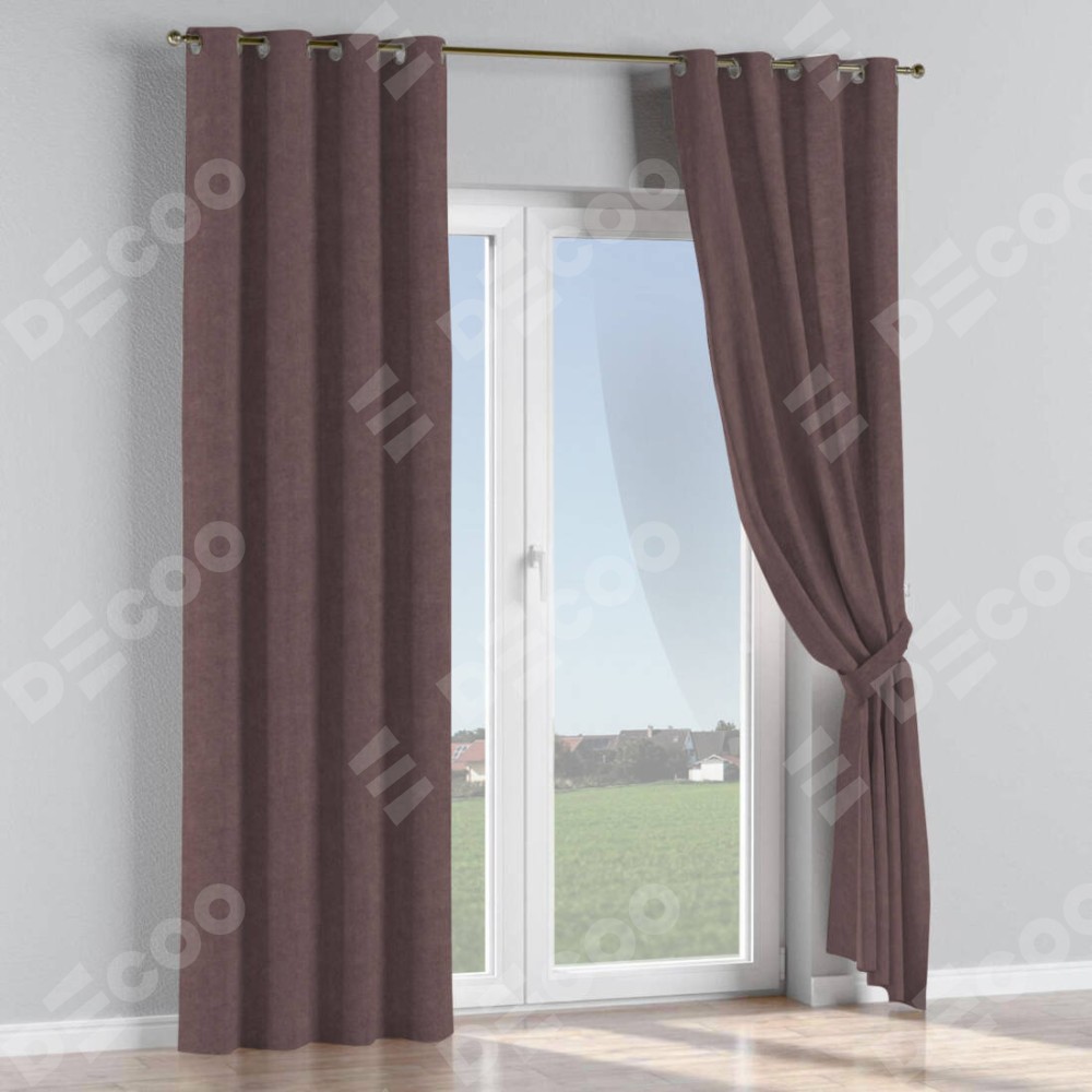 Комплект прямых штор, от производителя «Cortin», пошиты из ткани канвас махагон, артикул ткани v-37. Данная модель пошита на люверсах, комплектуется на выбор круглым карнизом и подходит для монтажа на стену или потолок. Прямые шторы на люверсах шьются по стандарту с коэффициентом 1/2 (на 100 см. ширины проёма 200 см. ширины ткани), отличительным преимуществом данной модели является простой способ монтажа. Достаточно повесить ее на трубу и штора готова!