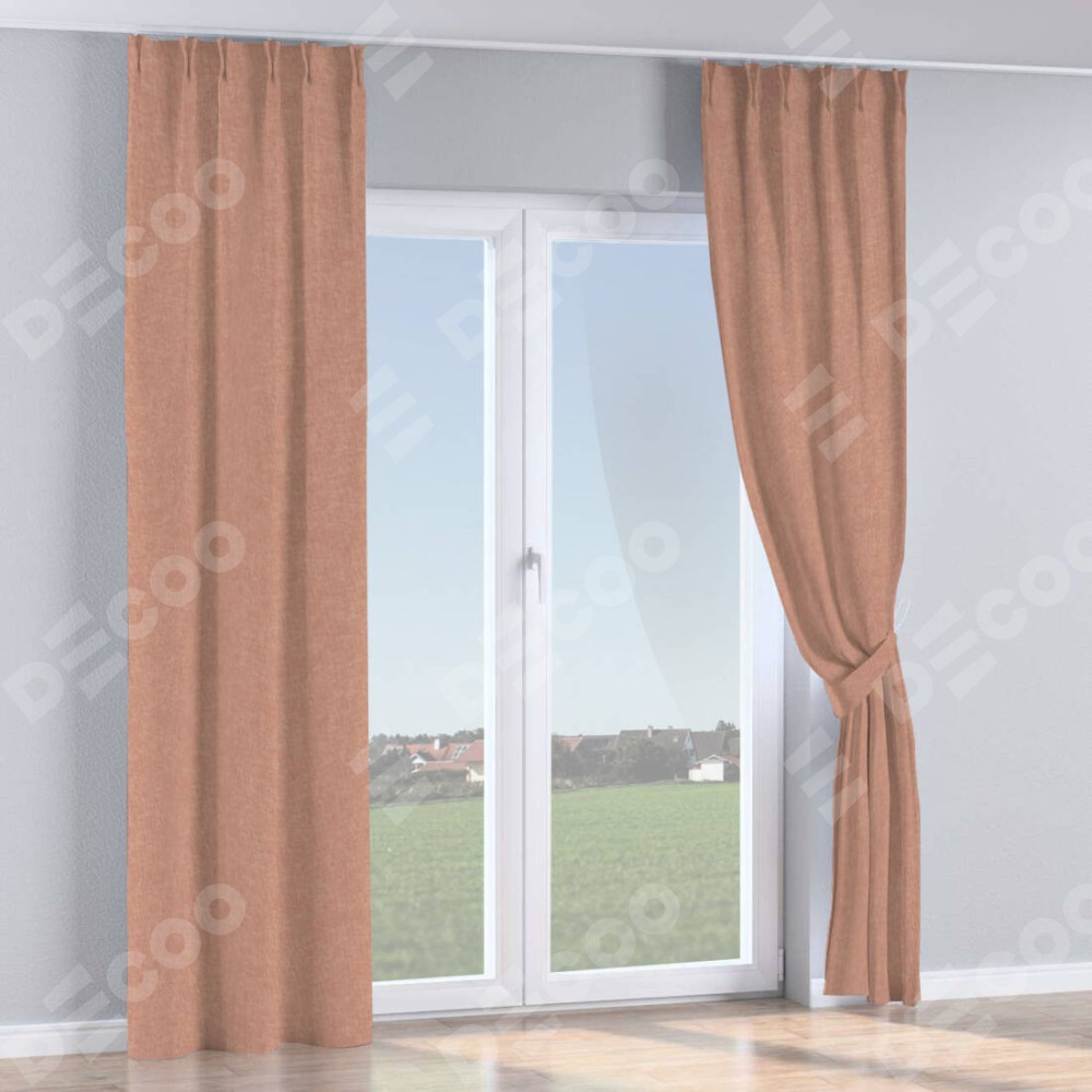 Комплект прямых штор, от производителя «Cortin», пошиты из ткани канвас розовая пудра, артикул ткани v-34. С изнаночной стороны в верхней части штор пристрачивается шторная лента с декоративными складками «Кустик». Для создания элегантных складок прямые шторы шьются по стандарту с коэффициентом 1:2 (на 100 см. ширины проёма 200 см. ширины ткани).