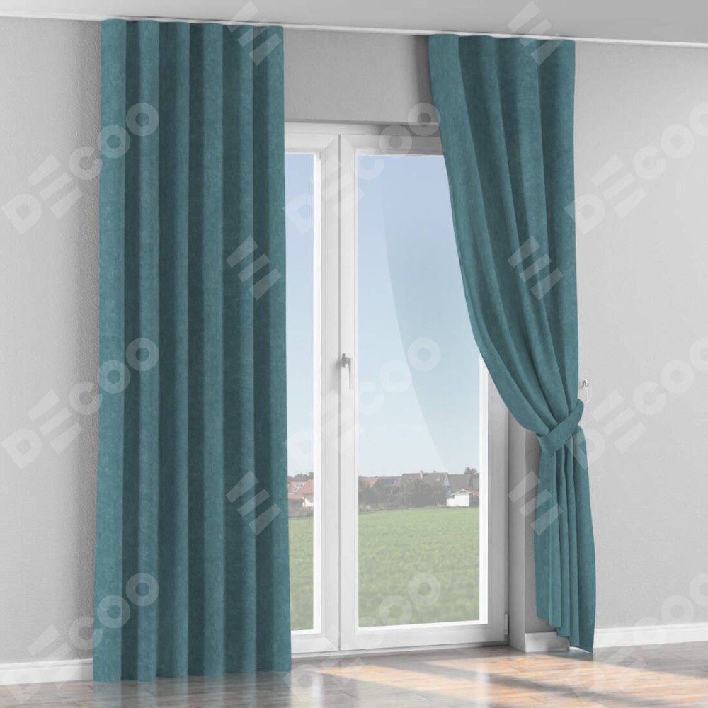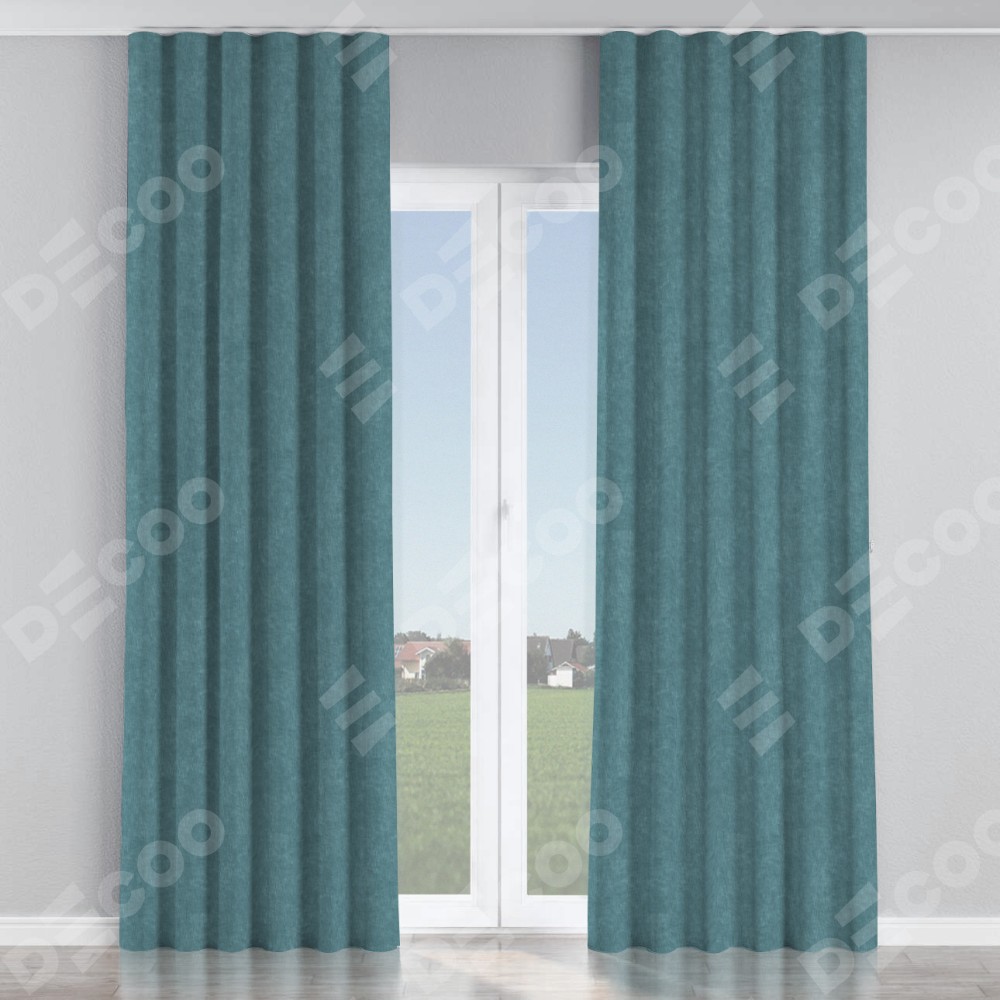 Комплект прямых штор, от производителя «Cortin», пошиты из ткани канвас серо-голубой, артикул ткани v-330. С изнаночной стороны в верхней части штор пристрачивается шторная лента с декоративными складками «Волна». Для создания элегантных складок прямые шторы шьются по стандарту с коэффициентом 1:2 (на 100 см. ширины проёма 200 см. ширины ткани).