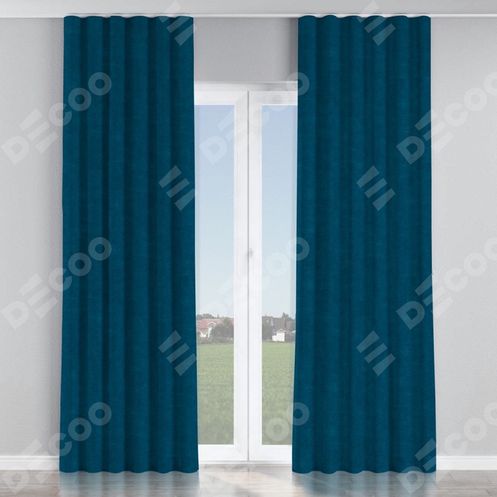 Комплект прямых штор, от производителя «Cortin», пошиты из ткани канвас синий, артикул ткани v-573. С изнаночной стороны в верхней части штор пристрачивается шторная лента с декоративными складками «Волна». Для создания элегантных складок прямые шторы шьются по стандарту с коэффициентом 1:2 (на 100 см. ширины проёма 200 см. ширины ткани).