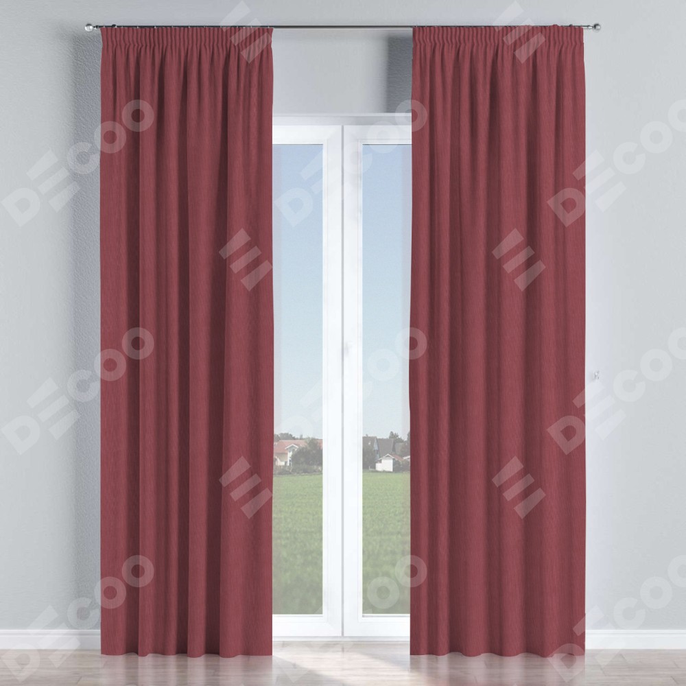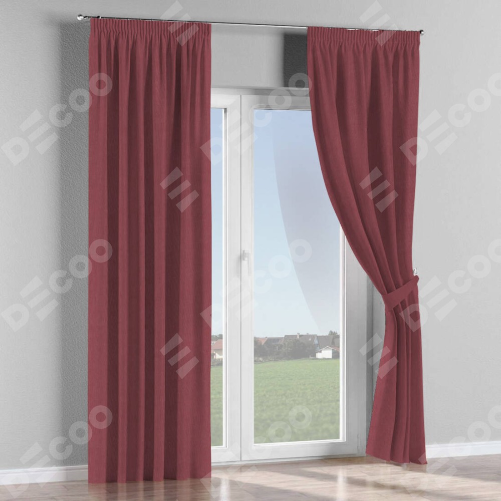 Комплект прямых штор, от производителя «Cortin», пошиты из ткани канвас ягодный, артикул ткани v-28. С изнаночной стороны в верхней части штор пристрачивается шторная лента с декоративными складками «Карандаш». Для создания элегантных складок прямые шторы шьются по стандарту с коэффициентом 1:2 (на 100 см. ширины проёма 200 см. ширины ткани).