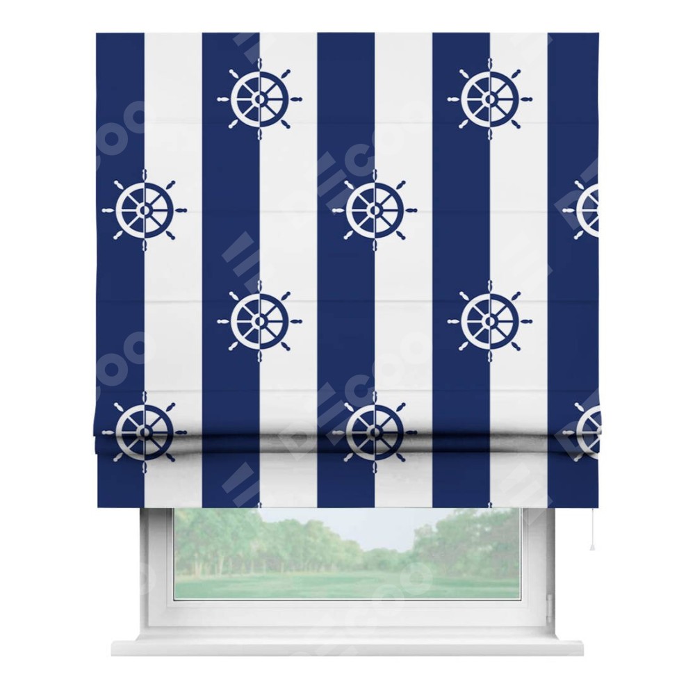 Римская штора «Кортин» для проема «Полоски и штурвалы» предоставлена в следующих характеристиках: