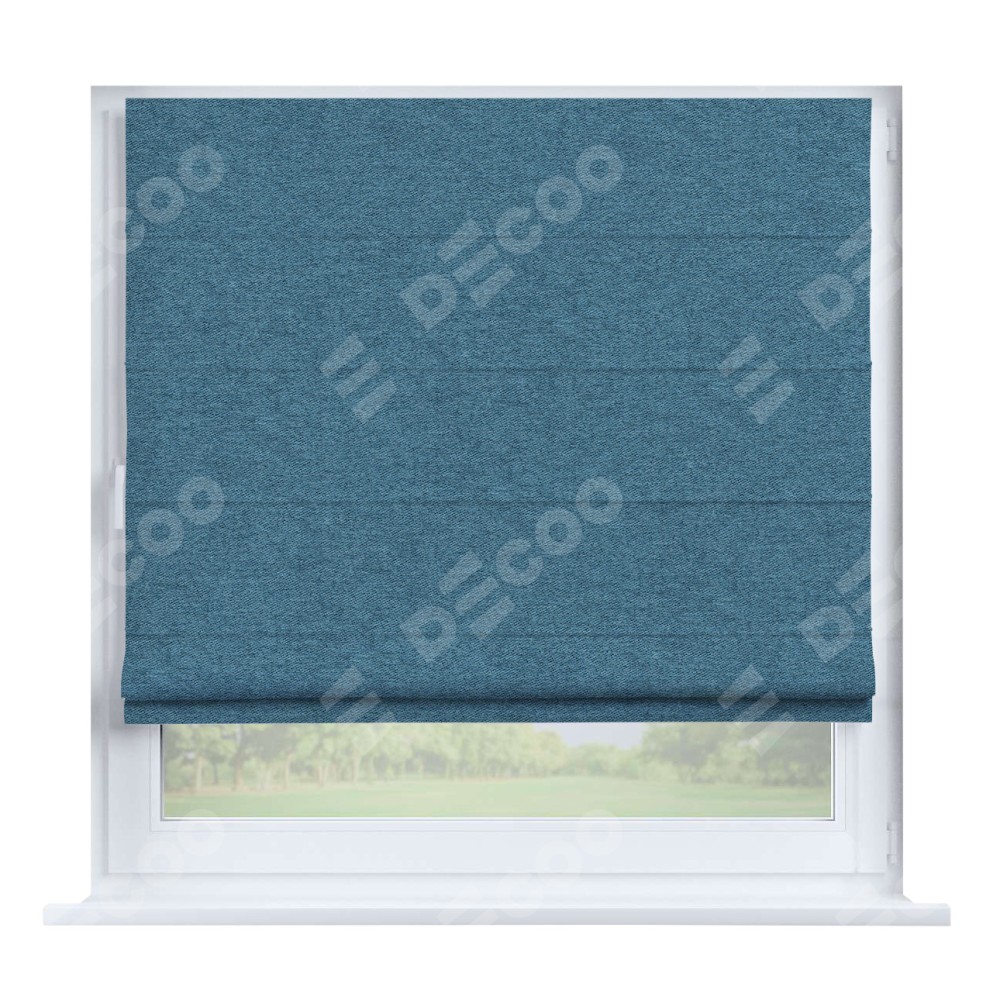 Римская штора производителя «Cortin», устанавливается на створку окна, пошита из ткани твид блэкаут светло-синий, артикул 90935. Штора шьётся по индивидуальным размерам, для данного типа римской шторы возможная ширина от 35 до 150 см., высота до 250 см.