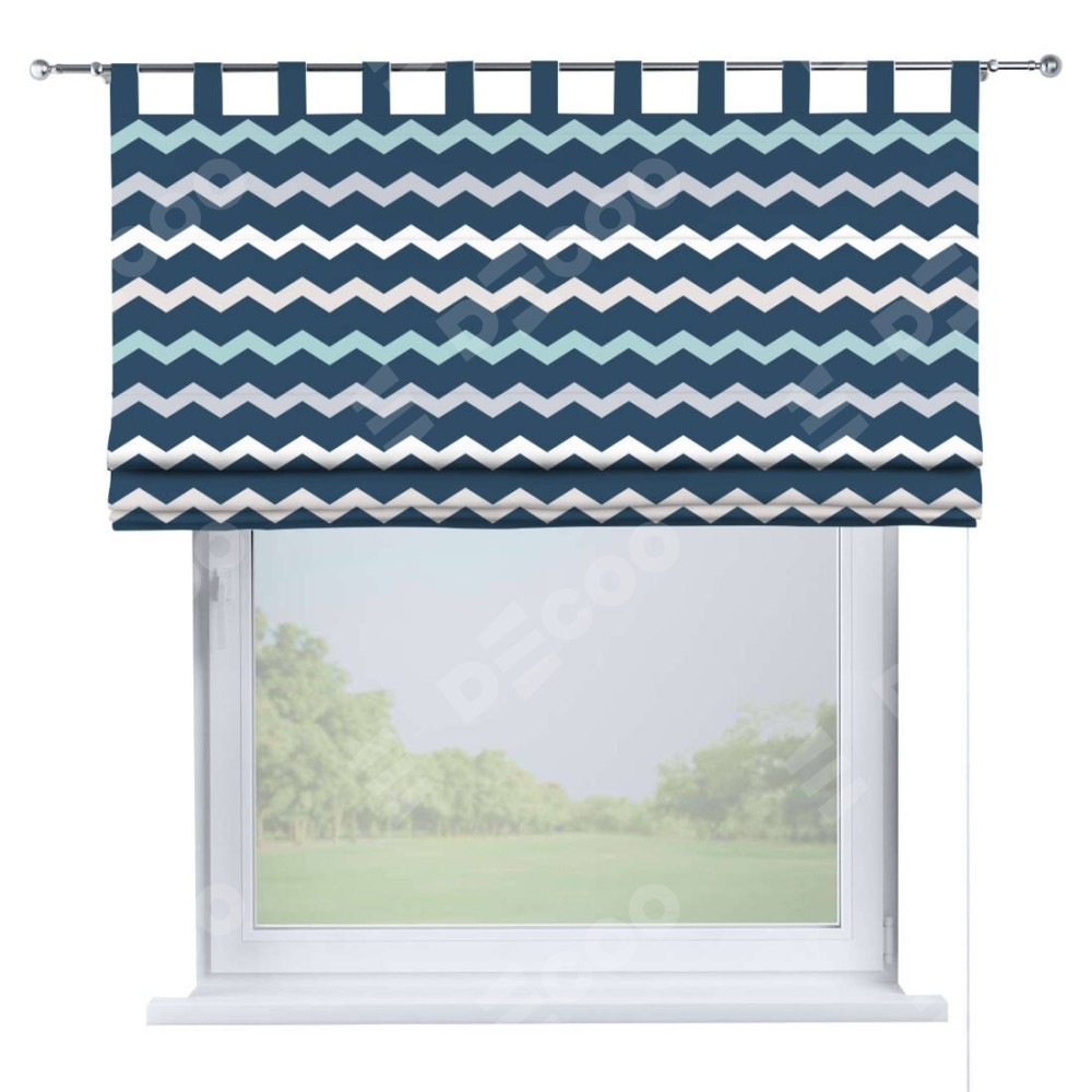 Римская штора производителя «Cortin», используется для проёма, пошита из ткани блэкаут с нанесением сублимационной печати «Морской шеврон». Данная модель пошита на петлях, комплектуется на выбор круглым карнизом и подходит для монтажа на стену. Римская штора на петлях имеет простую систему регулировки высоты, отличительным преимуществом данной модели является простой способ монтажа. Достаточно повесить ее на трубу и штора готова!