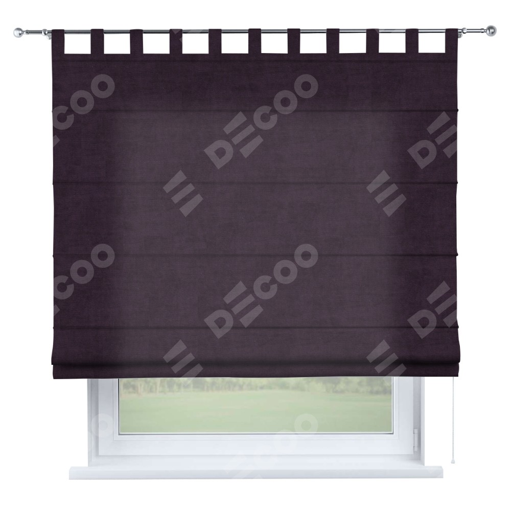 Римская штора производителя «Cortin», используется для проёма, пошита из ткани вельвет тёмно-фиолетовый, артикул ткани 72403. Данная модель пошита на петлях, комплектуется на выбор круглым карнизом и подходит для монтажа на стену. Римская штора на петлях имеет простую систему регулировки высоты, отличительным преимуществом данной модели является простой способ монтажа. Достаточно повесить ее на трубу и штора готова!