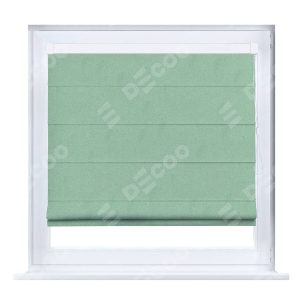 Римская штора производителя «Cortin», устанавливается на створку окна, пошита из ткани блэкаут однотонный ментоловый, артикул 91572−1. Штора шьётся по индивидуальным размерам, для данного типа римской шторы возможная ширина от 35 до 150 см., высота до 250 см.