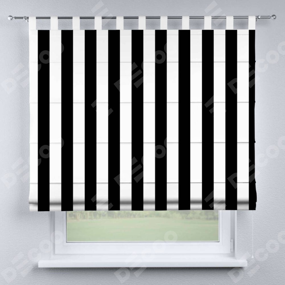 Римская штора производителя «Cortin», используется для проёма, пошита из ткани блэкаут с нанесением сублимационной печати «Черное и белое». Данная модель пошита на петлях, комплектуется на выбор круглым карнизом и подходит для монтажа на стену. Римская штора на петлях имеет простую систему регулировки высоты, отличительным преимуществом данной модели является простой способ монтажа. Достаточно повесить ее на трубу и штора готова!