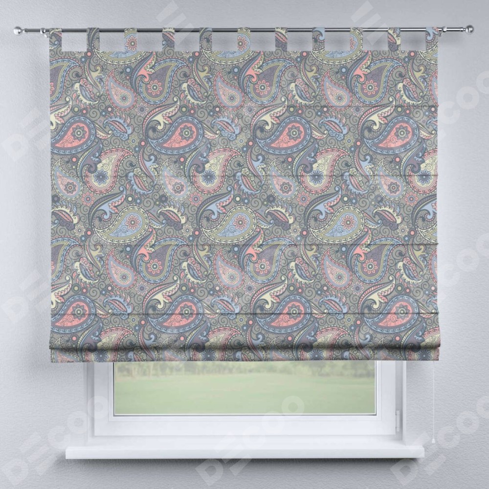 Римская штора производителя «Cortin», используется для проёма, пошита из ткани блэкаут с нанесением сублимационной печати «Цветной пейсли». Данная модель пошита на петлях, комплектуется на выбор круглым карнизом и подходит для монтажа на стену. Римская штора на петлях имеет простую систему регулировки высоты, отличительным преимуществом данной модели является простой способ монтажа. Достаточно повесить ее на трубу и штора готова!