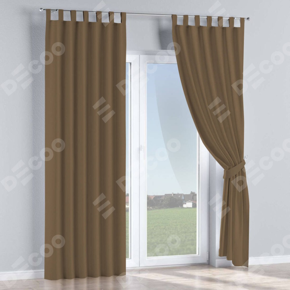 Комплект прямых штор, от производителя «Cortin», пошиты из ткани блэкаут однотонный коричневый, артикул ткани 91334. Данная модель пошита на петлях, комплектуется на выбор круглым карнизом и подходит для монтажа на стену или потолок. Прямые шторы на петлях шьются по стандарту с коэффициентом 1/2 (на 100 см. ширины проёма 200 см. ширины ткани), отличительным преимуществом данной модели является простой способ монтажа. Достаточно повесить ее на трубу и штора готова!