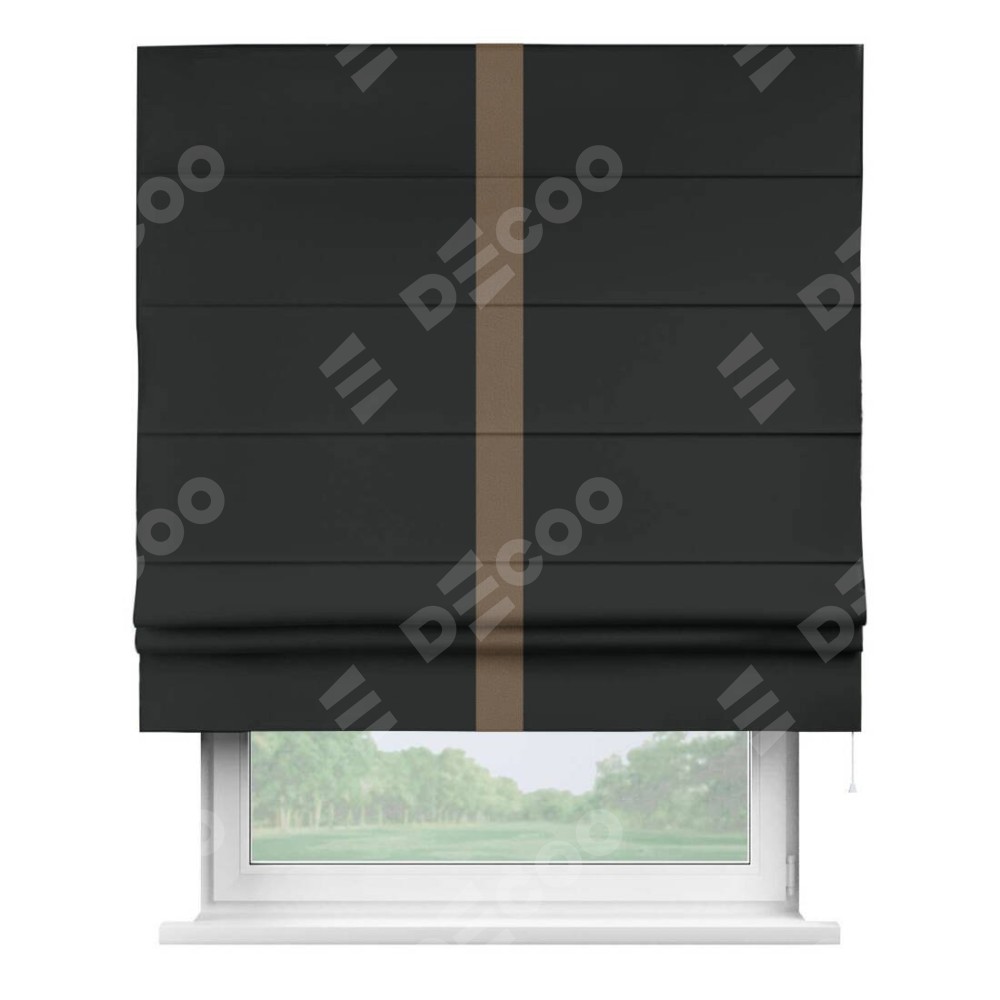 Римская штора производителя «Cortin», используется для проёма, пошита из ткани блэкаут однотонный черный, артикул ткани 91571−2. Отделка шторы кантом «Хайвей», ткань для канта используется из блэкаута однотонного разной расцветки на выбор. Имеет универсальный механизм и подходит для монтажа: на потолок, на стену и в нишу.