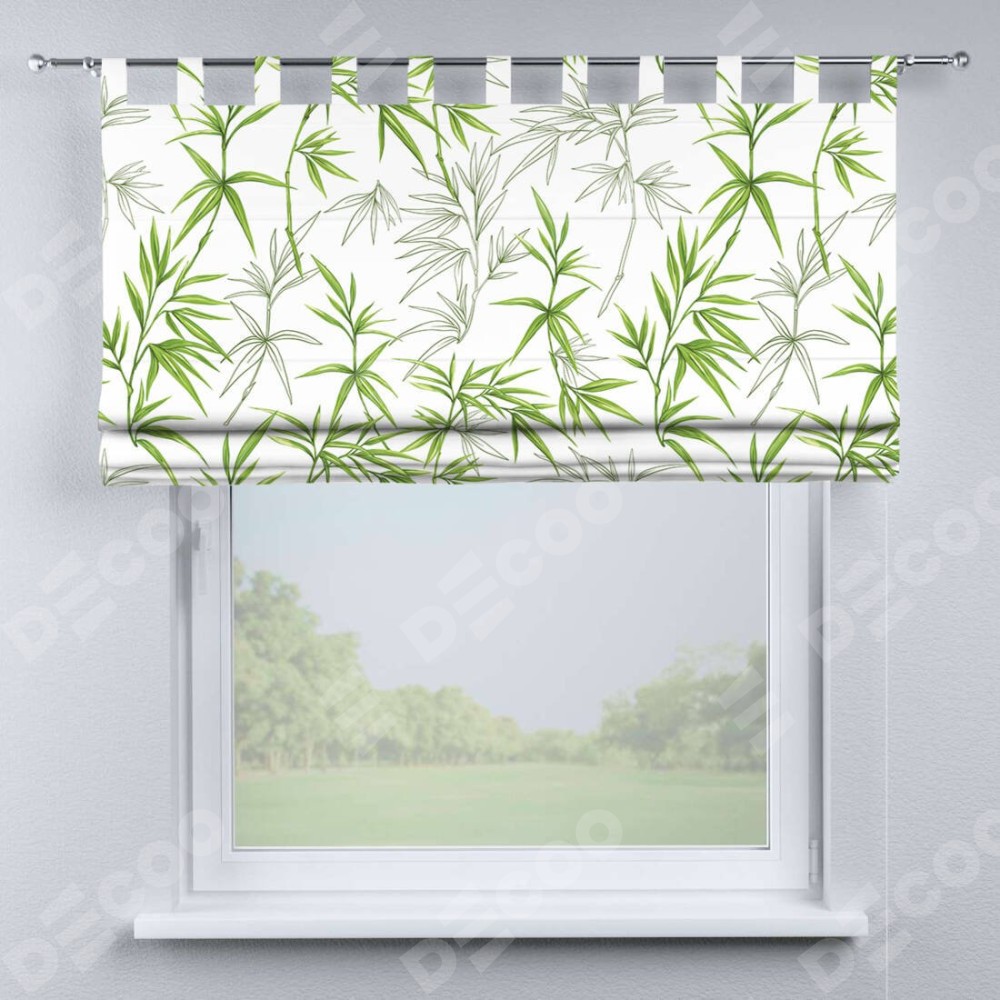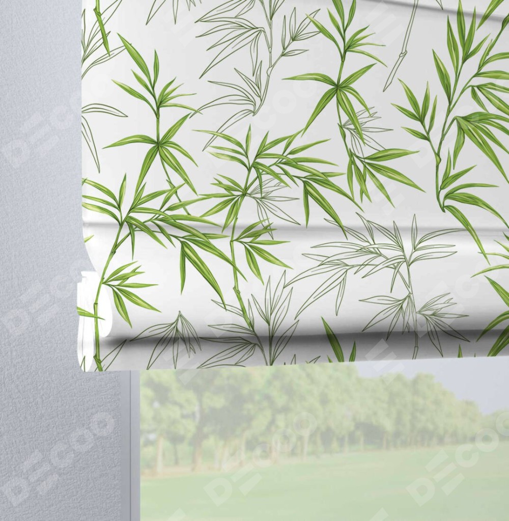 Римская штора производителя «Cortin», используется для проёма, пошита из ткани блэкаут с нанесением сублимационной печати «Зелёный бамбук». Данная модель пошита на петлях, комплектуется на выбор круглым карнизом и подходит для монтажа на стену. Римская штора на петлях имеет простую систему регулировки высоты, отличительным преимуществом данной модели является простой способ монтажа. Достаточно повесить ее на трубу и штора готова!