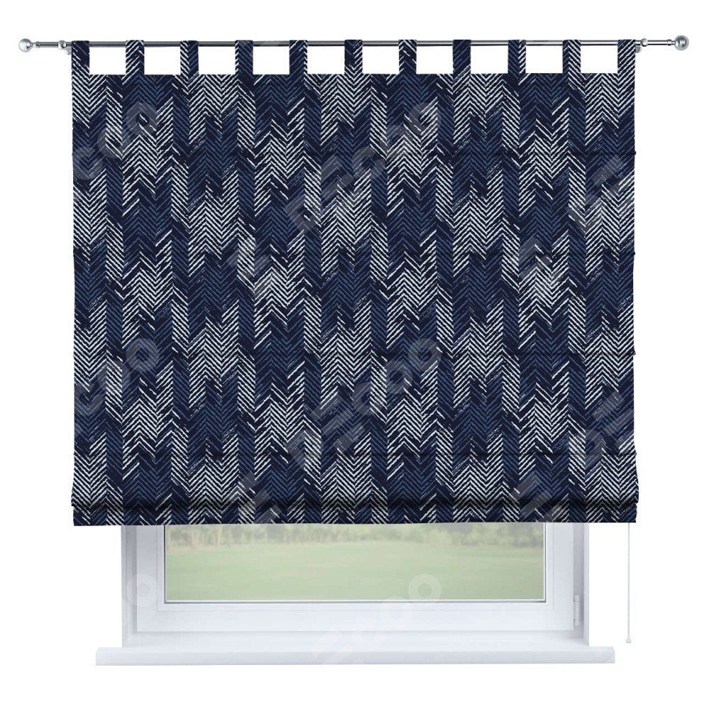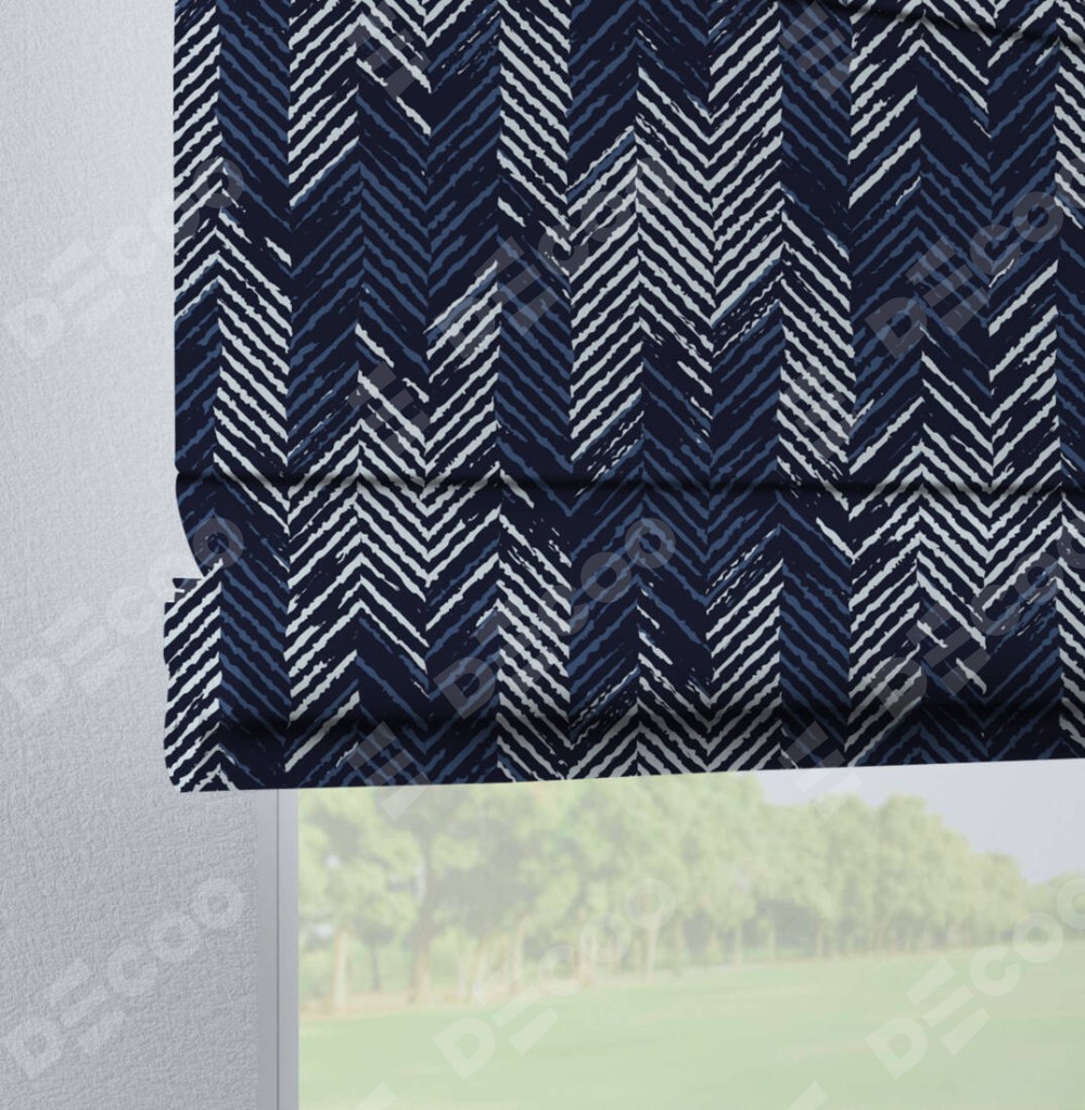 Римская штора производителя «Cortin», используется для проёма, пошита из ткани блэкаут с нанесением сублимационной печати «Пёстрый зигзаг». Данная модель пошита на петлях, комплектуется на выбор круглым карнизом и подходит для монтажа на стену. Римская штора на петлях имеет простую систему регулировки высоты, отличительным преимуществом данной модели является простой способ монтажа. Достаточно повесить ее на трубу и штора готова!