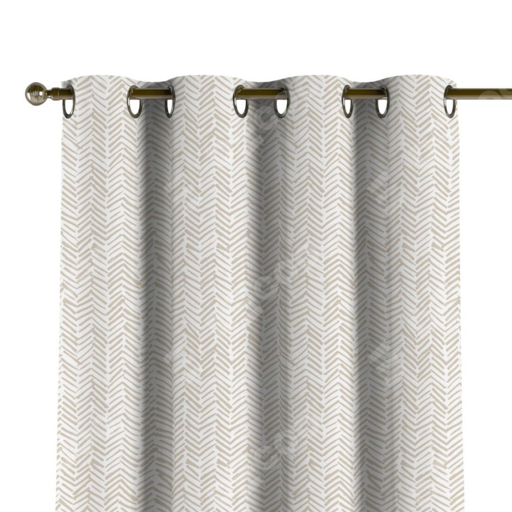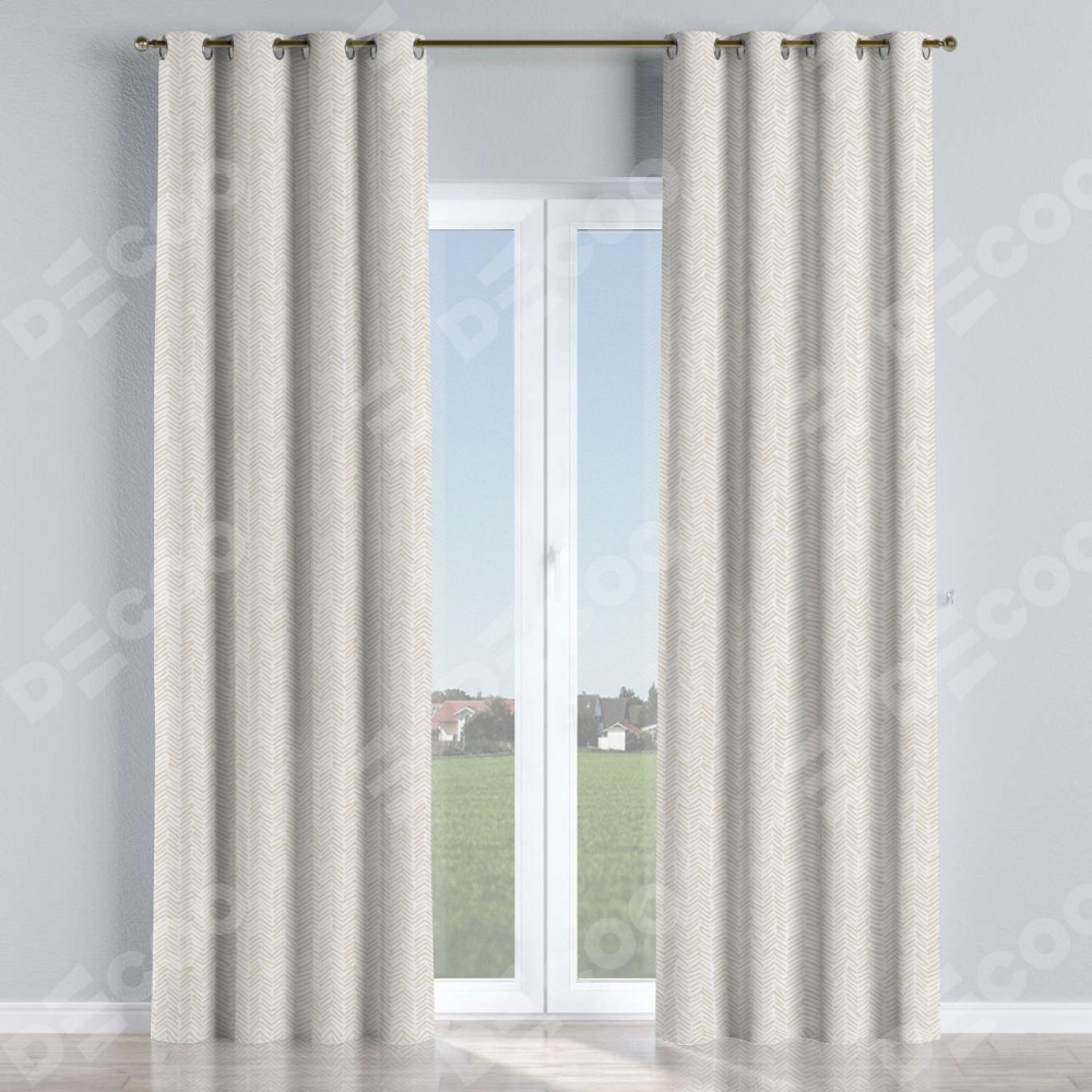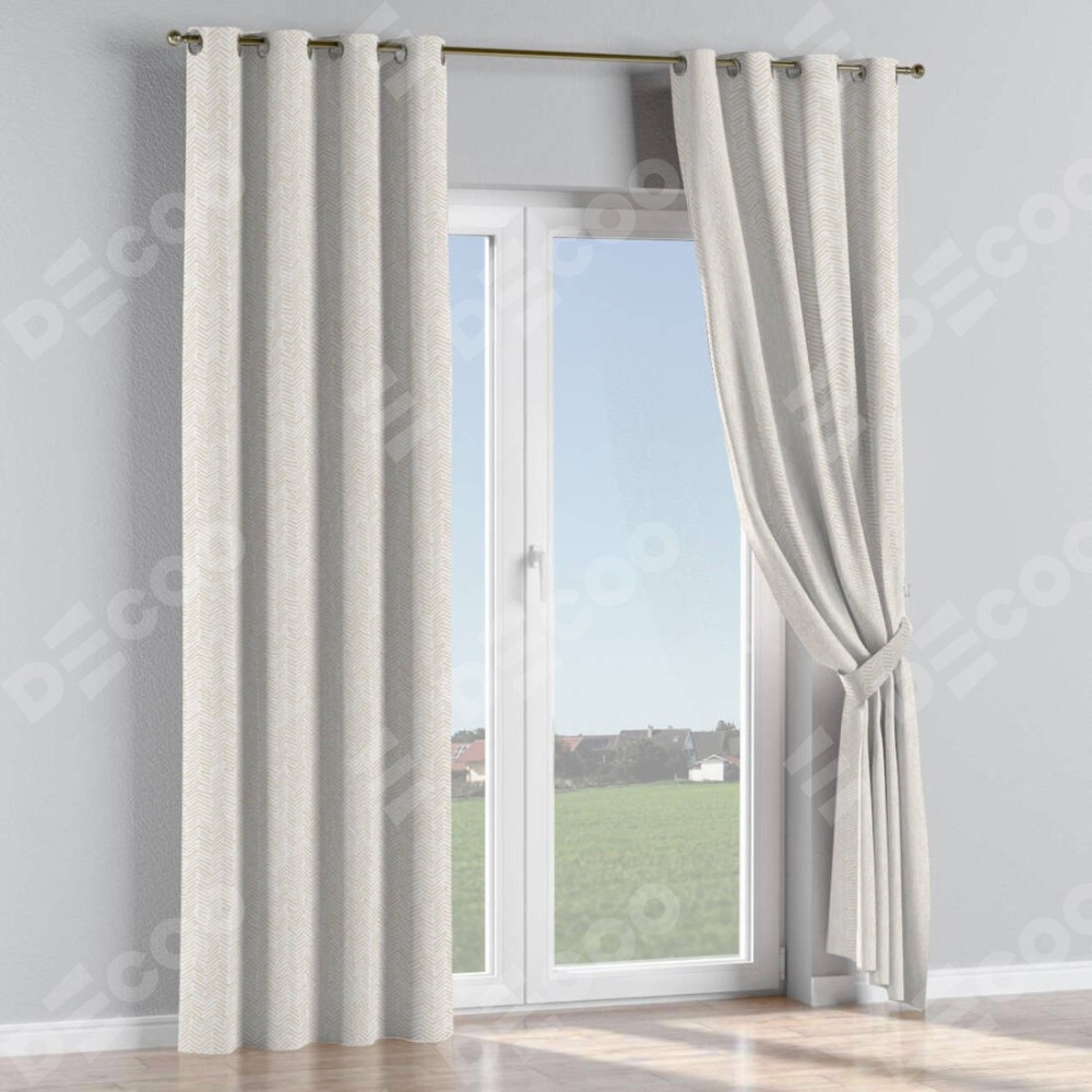 Комплект прямых штор, от производителя «Cortin», пошиты из ткани блэкаут с нанесением сублимационной печати «Узор „Ёлочка“ бежевый». Данная модель пошита на люверсах, комплектуется на выбор круглым карнизом и подходит для монтажа на стену или потолок. Прямые шторы на люверсах шьются по стандарту с коэффициентом 1/2 (на 100 см. ширины проёма 200 см. ширины ткани), отличительным преимуществом данной модели является простой способ монтажа. Достаточно повесить ее на трубу и штора готова!