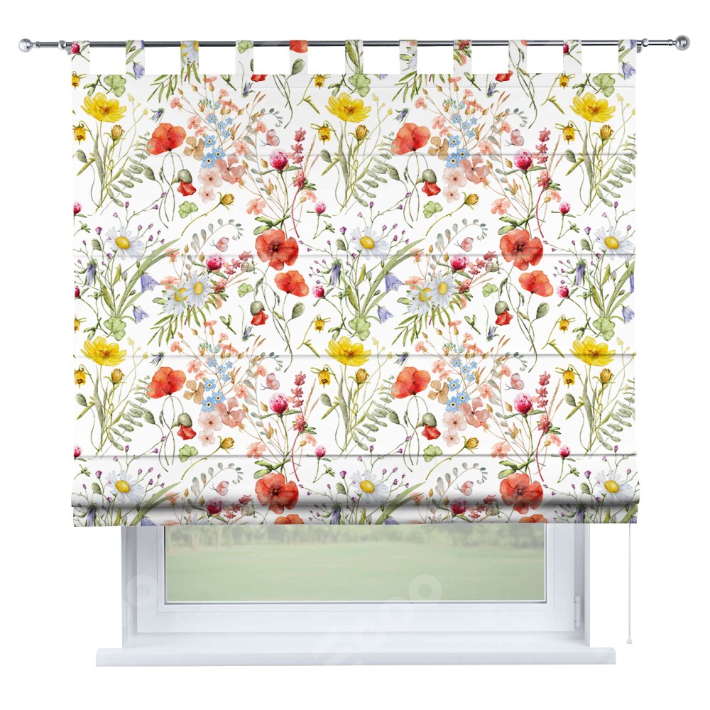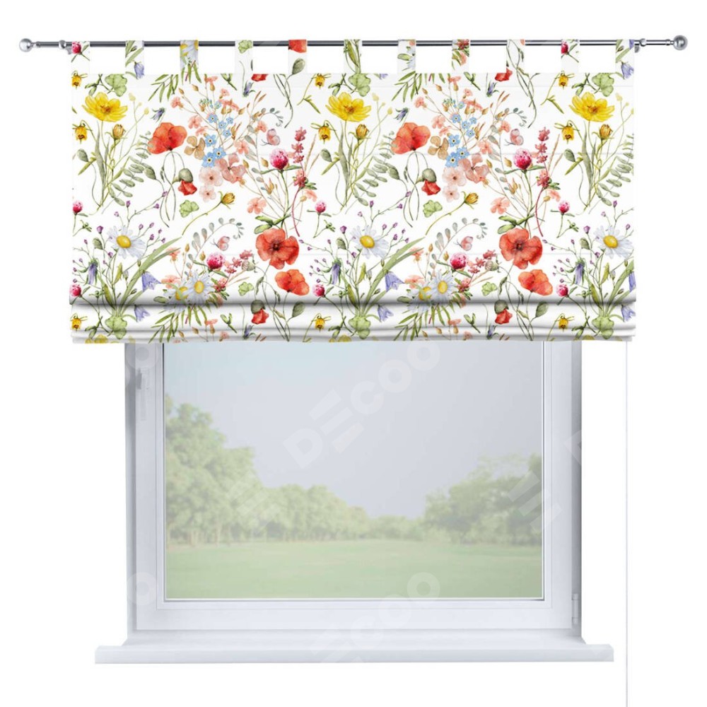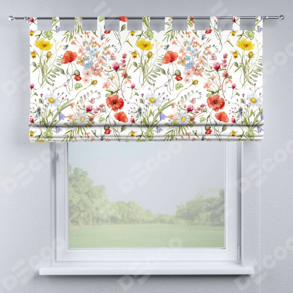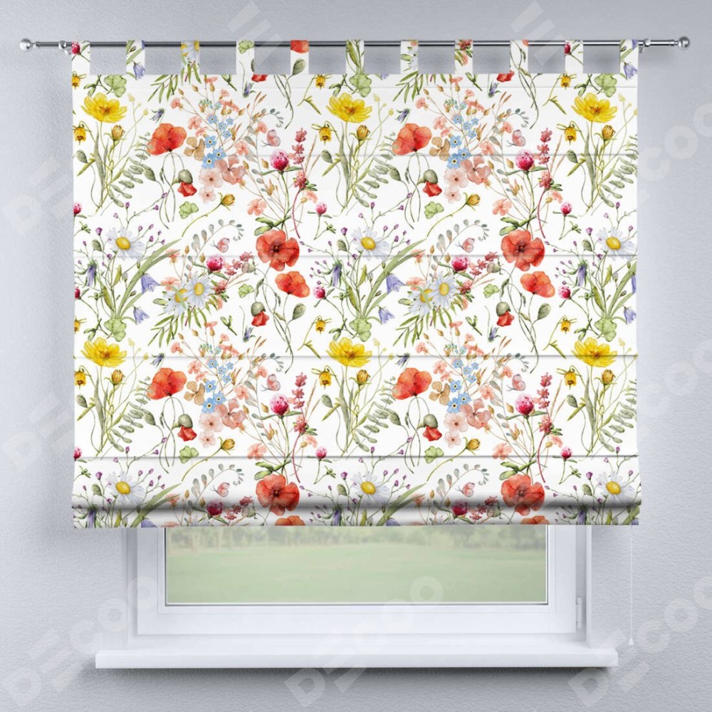 Римская штора производителя «Cortin», используется для проёма, пошита из ткани блэкаут с нанесением сублимационной печати «Полевые маки». Данная модель пошита на петлях, комплектуется на выбор круглым карнизом и подходит для монтажа на стену. Римская штора на петлях имеет простую систему регулировки высоты, отличительным преимуществом данной модели является простой способ монтажа. Достаточно повесить ее на трубу и штора готова!