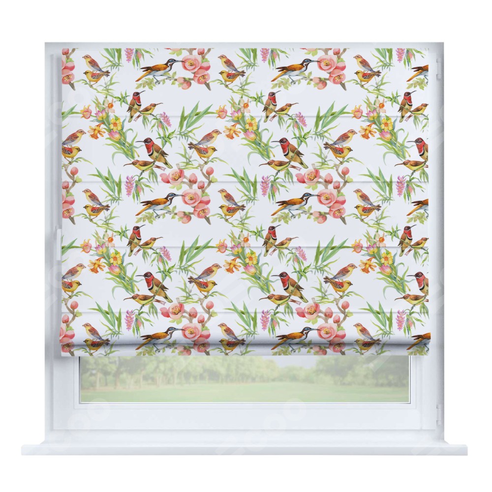 Римская штора производителя «Cortin», устанавливается на створку окна, пошита из ткани блэкаут с нанесением сублимационной печати «Певчие птички». Штора шьётся по индивидуальным размерам, для данного типа римской шторы возможная ширина от 35 до 150 см., высота до 250 см.