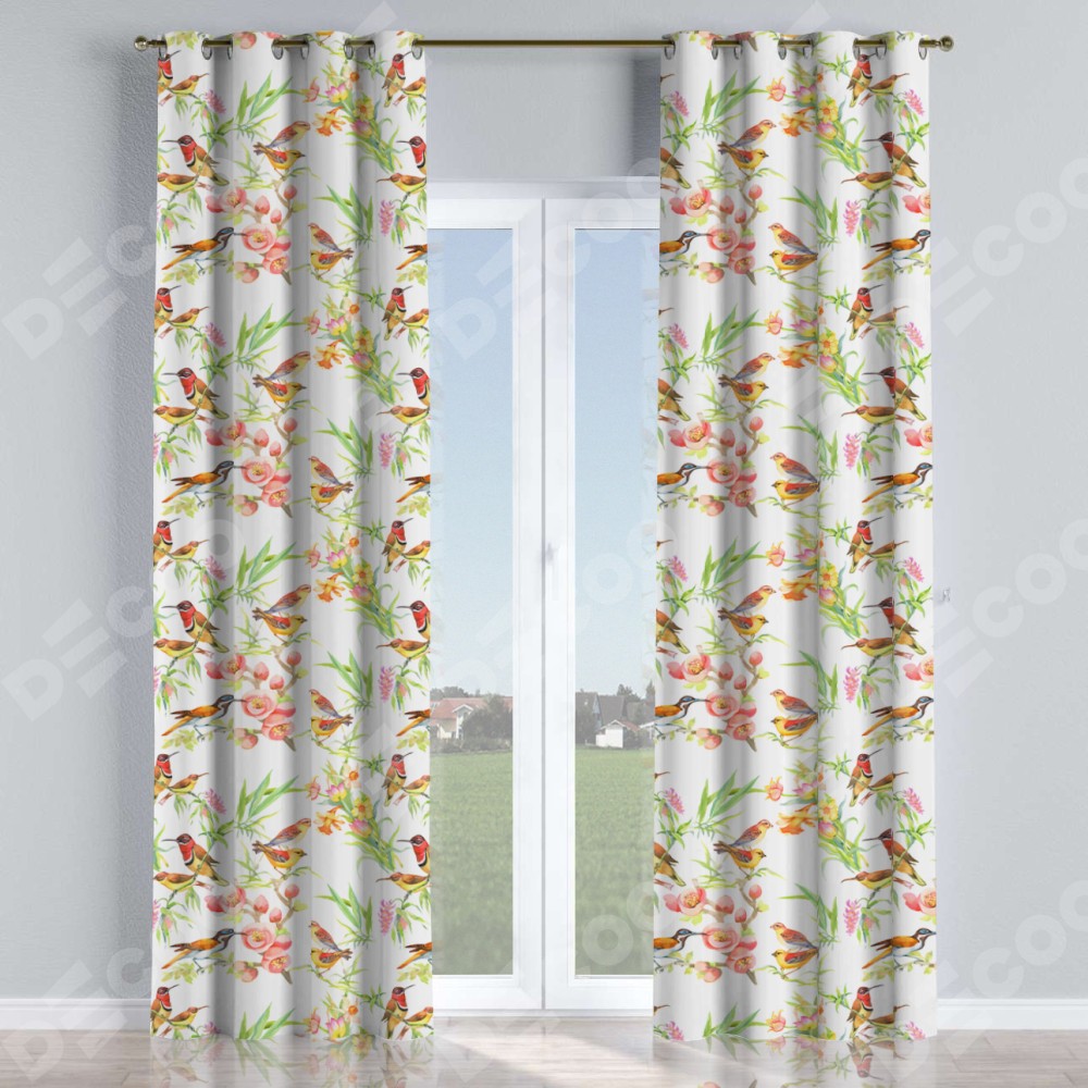 Комплект прямых штор, от производителя «Cortin», пошиты из ткани блэкаут с нанесением сублимационной печати «Певчие птички». Данная модель пошита на люверсах, комплектуется на выбор круглым карнизом и подходит для монтажа на стену или потолок. Прямые шторы на люверсах шьются по стандарту с коэффициентом 1/2 (на 100 см. ширины проёма 200 см. ширины ткани), отличительным преимуществом данной модели является простой способ монтажа. Достаточно повесить ее на трубу и штора готова!