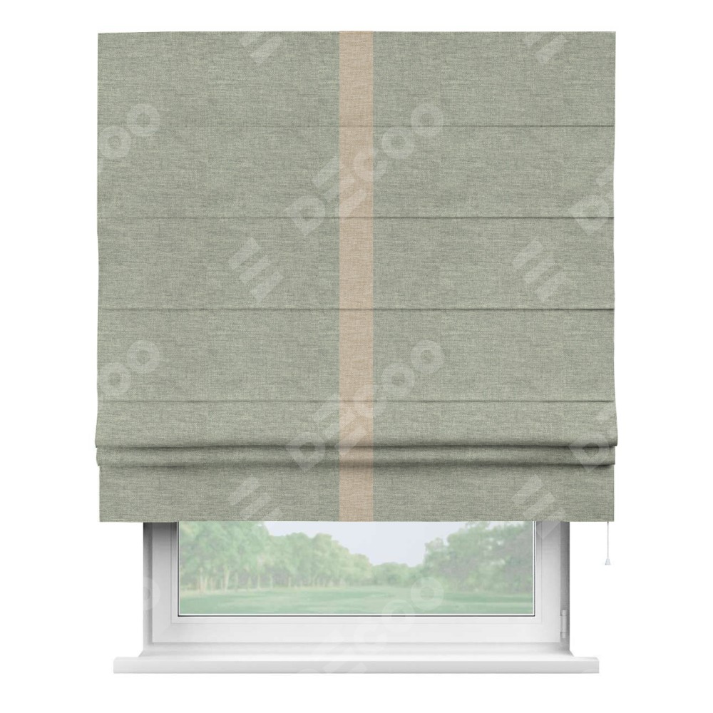 Римская штора производителя «Cortin», используется для проёма, пошита из ткани лён кашемир серый new, артикул 21618. Отделка шторы кантом «Хайвэй», ткань для канта используется из льна разной расцветки на выбор. Имеет универсальный механизм и подходит для монтажа: на потолок, на стену и в нишу.