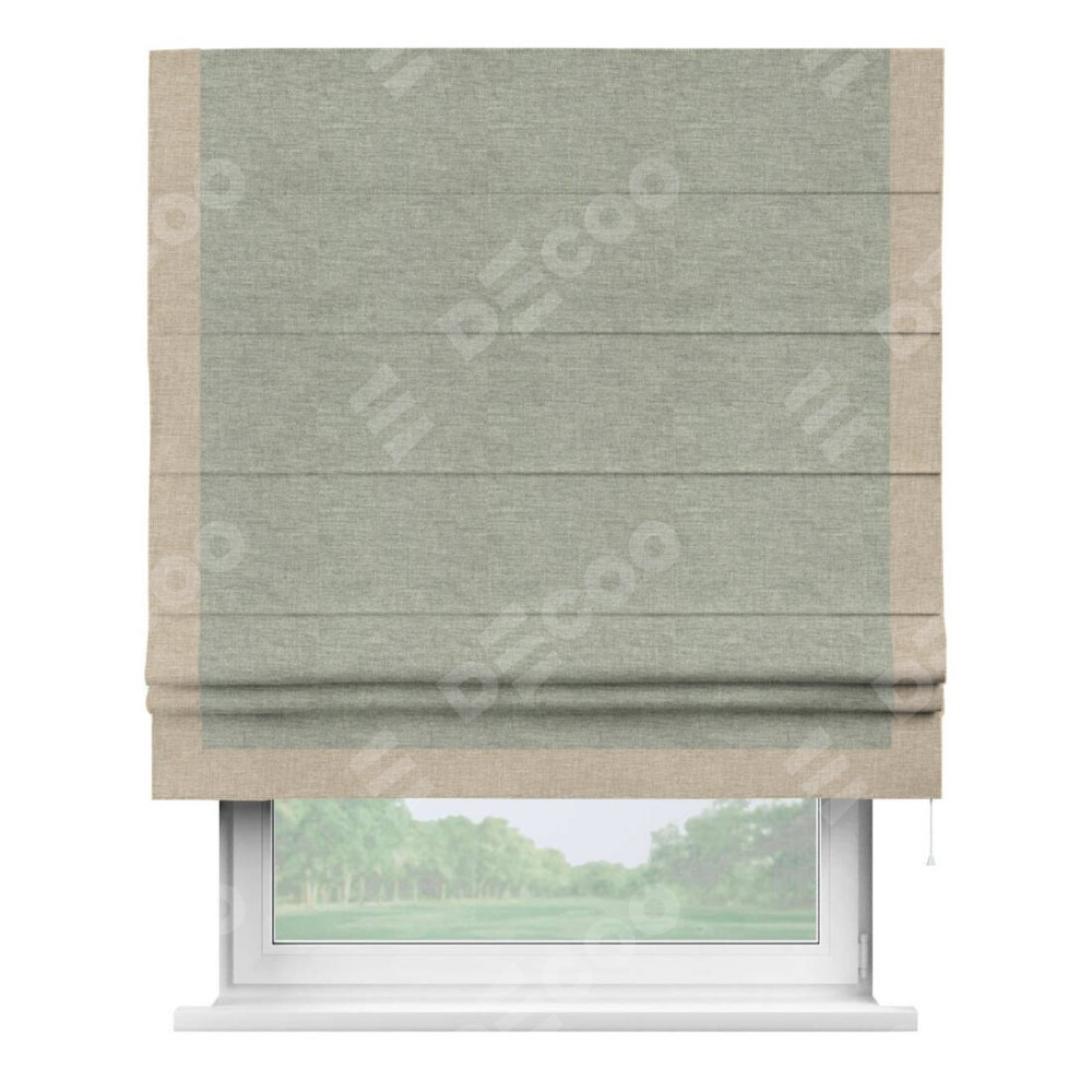 Римская штора производителя «Cortin», используется для проёма, пошита из ткани лён кашемир серый new, артикул 21618. Отделка шторы кантом «Виктория», ткань для канта используется из льна разной расцветки на выбор. Имеет универсальный механизм и подходит для монтажа: на потолок, на стену и в нишу.
