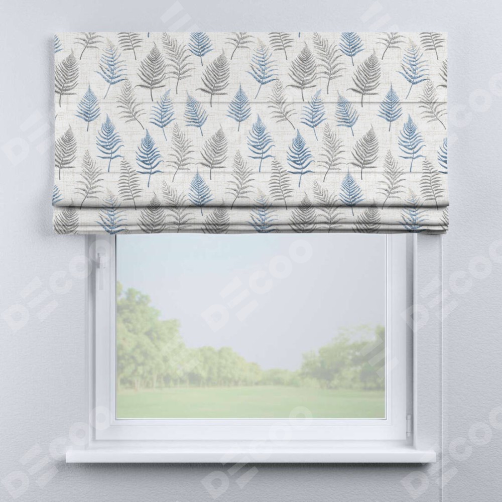 Классическая римская штора производителя «Cortin», пошита из ткани блэкаут с нанесением сублимационной печати «Королевский папоротник». Имеет универсальный механизм и подходит для монтажа: на потолок, на стену и в нишу.