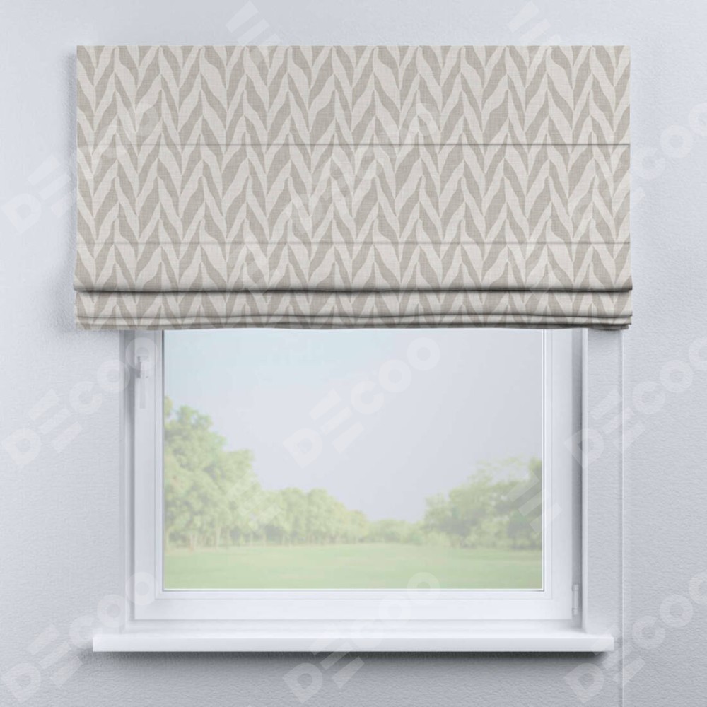 Классическая римская штора производителя «Cortin», пошита из ткани блэкаут с нанесением сублимационной печати «Песочный зебрано». Имеет универсальный механизм и подходит для монтажа: на потолок, на стену и в нишу.