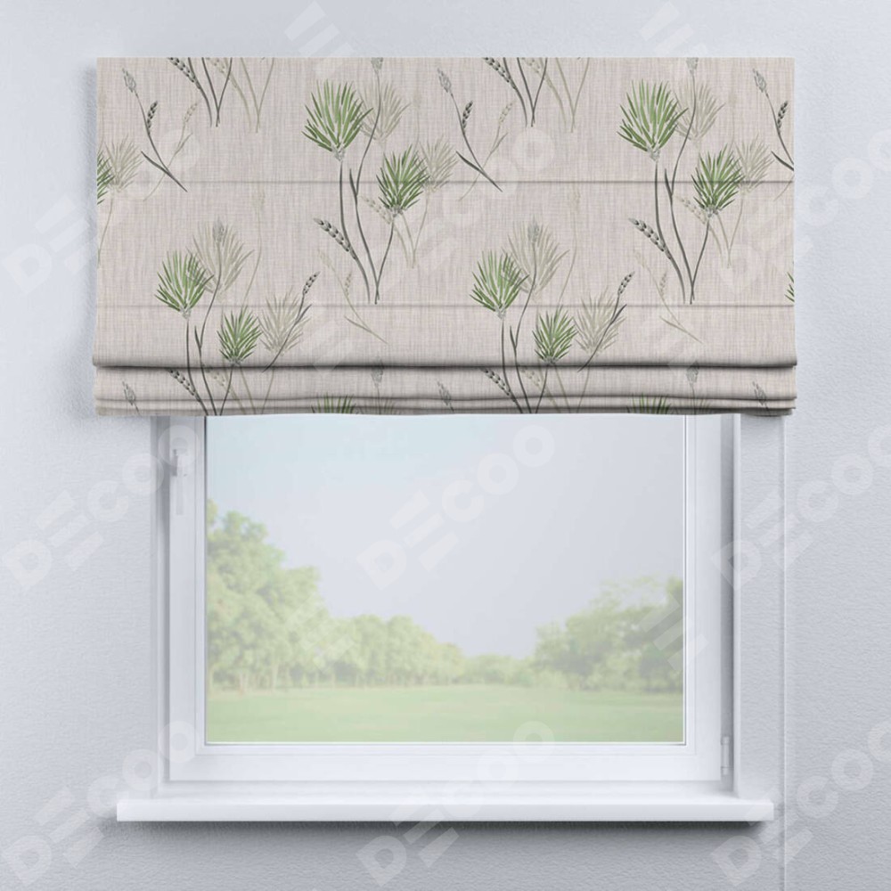 Классическая римская штора производителя «Cortin», пошита из ткани блэкаут с нанесением сублимационной печати «Полевые травы бежевый». Имеет универсальный механизм и подходит для монтажа: на потолок, на стену и в нишу.