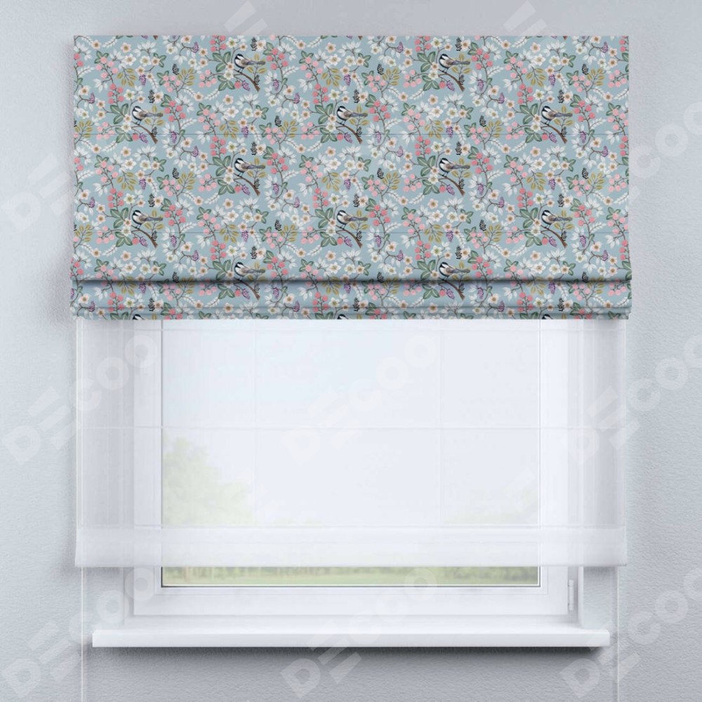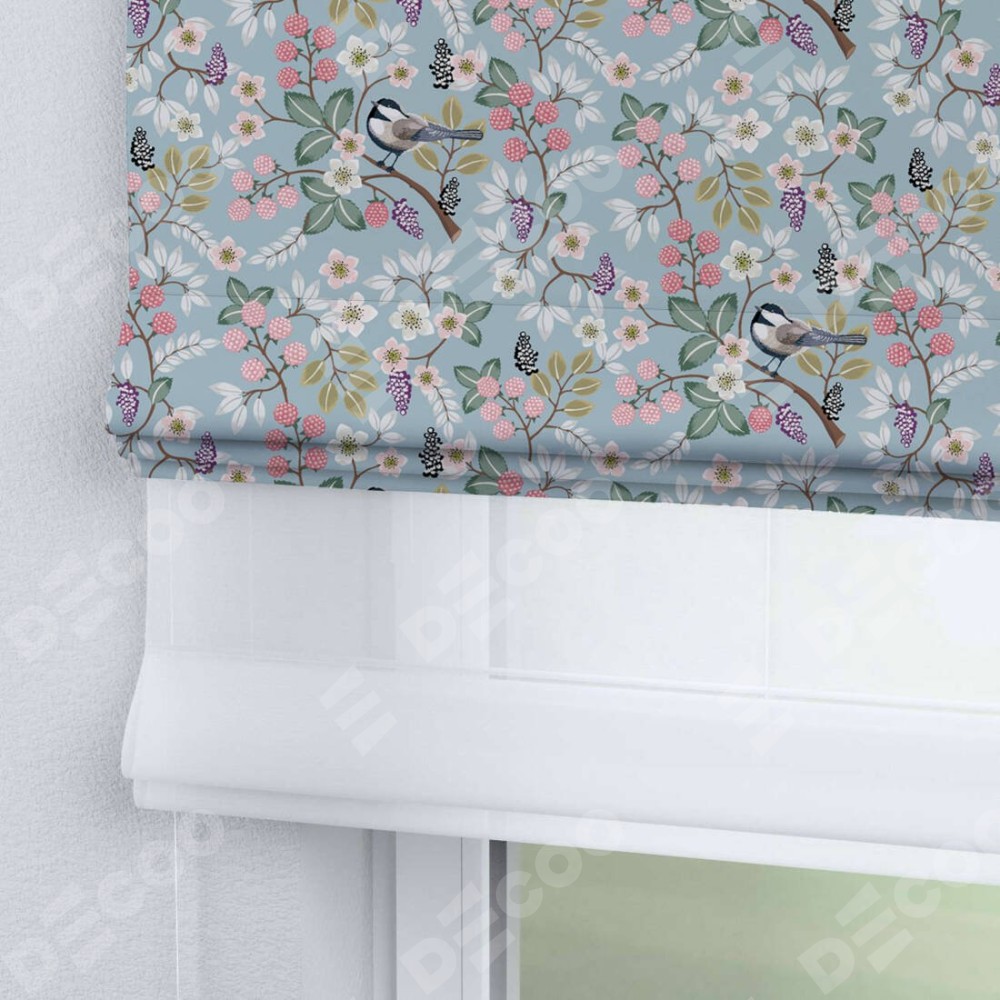 Двойная римская штора «День-ночь» от производителя Cortin предназначена для использования в проёмах. Эта штора уникальна тем, что состоит из двух полотен. На лицевой стороне находится блэкаут с нанесением сублимационной печати «Ежевичное утро», обеспечивающий эффективное затемнение. В комплект также входит вторая ткань — легкий белый тюль (артикул: V-01), который добавляет изящества и легкости оформлению окна. Кроме того, доступны и другие разновидности ткани тюль, выбор которых доступен по ссылке .