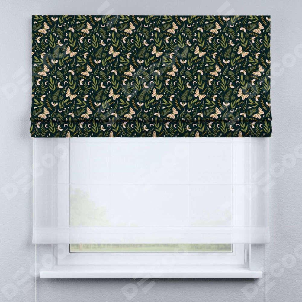 Двойная римская штора «День-ночь» от производителя Cortin предназначена для использования в проёмах. Эта штора уникальна тем, что состоит из двух полотен. На лицевой стороне находится блэкаут с нанесением сублимационной печати «Летняя ночь», обеспечивающий эффективное затемнение. В комплект также входит вторая ткань — легкий белый тюль (артикул: V-01), который добавляет изящества и легкости оформлению окна. Кроме того, доступны и другие разновидности ткани тюль, выбор которых доступен по ссылке .