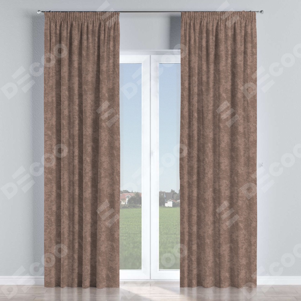 Комплект прямых штор, от производителя «Cortin», пошиты из ткани софт мрамор капучино, артикул ткани 93577. С изнаночной стороны в верхней части штор пристрачивается шторная лента с декоративными складками «Карандаш». Для создания элегантных складок прямые шторы шьются по стандарту с коэффициентом 1:2 (на 100 см. ширины проёма 200 см. ширины ткани).