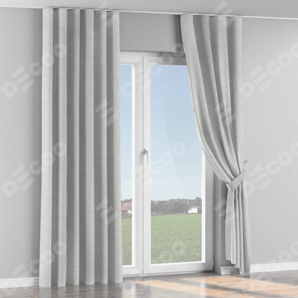 Комплект прямых штор, от производителя «Cortin», пошиты из ткани софт мрамор белый, артикул ткани 93581. С изнаночной стороны в верхней части штор пристрачивается шторная лента с декоративными складками «Волна». Для создания элегантных складок прямые шторы шьются по стандарту с коэффициентом 1:2 (на 100 см. ширины проёма 200 см. ширины ткани).