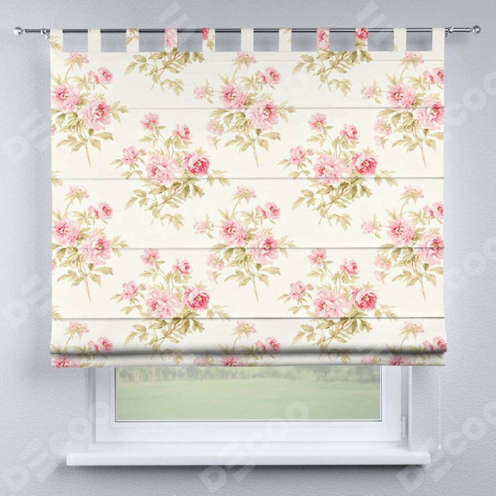 Римская штора производителя «Cortin», используется для проёма, пошита из ткани блэкаут с нанесением сублимационной печати «Английский шебби-шик». Данная модель пошита на петлях, комплектуется на выбор круглым карнизом и подходит для монтажа на стену. Римская штора на петлях имеет простую систему регулировки высоты, отличительным преимуществом данной модели является простой способ монтажа. Достаточно повесить ее на трубу и штора готова!