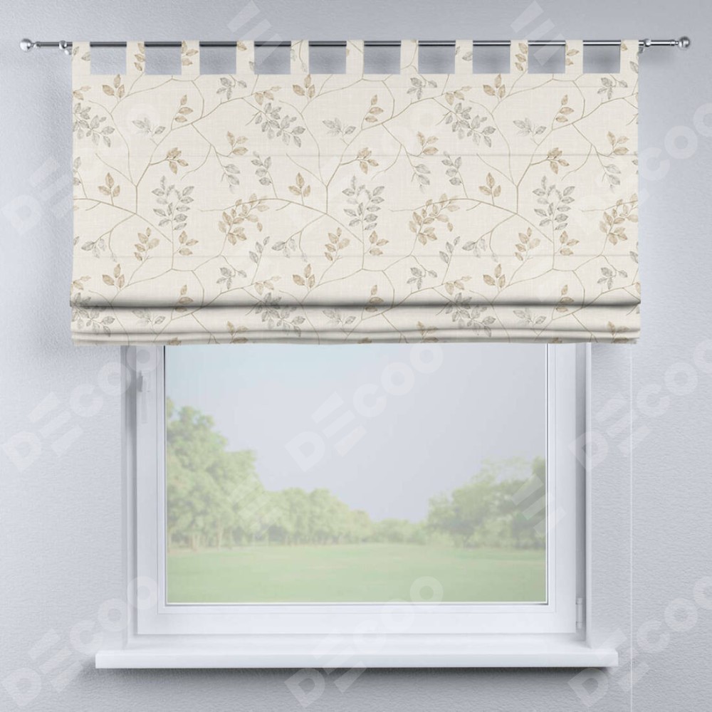 Римская штора производителя «Cortin», используется для проёма, пошита из ткани блэкаут с нанесением сублимационной печати «Флора бежевый». Данная модель пошита на петлях, комплектуется на выбор круглым карнизом и подходит для монтажа на стену. Римская штора на петлях имеет простую систему регулировки высоты, отличительным преимуществом данной модели является простой способ монтажа. Достаточно повесить ее на трубу и штора готова!