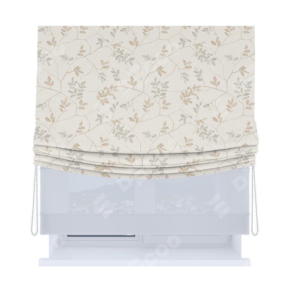 Римская штора день-ночь производителя «Cortin», используется для проёма, пошита из двух полотен, с лицевой блэкаут с нанесением сублимационной печати «Флора бежевый», вторая ткань тюль (по стандарту комплектуется тюль белого цвета артикул V-01). Имеет универсальный механизм и подходит для монтажа: на потолок, на стену и в нишу. Удобное управление каждой шторой отдельно.