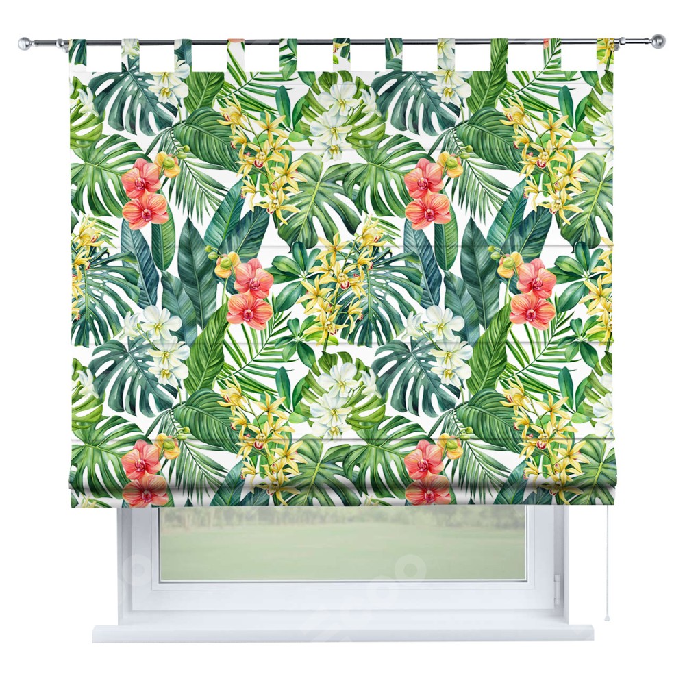 Римская штора производителя «Cortin», используется для проёма, пошита из ткани блэкаут с нанесением сублимационной печати «Орхидеи в тропиках». Данная модель пошита на петлях, комплектуется на выбор круглым карнизом и подходит для монтажа на стену. Римская штора на петлях имеет простую систему регулировки высоты, отличительным преимуществом данной модели является простой способ монтажа. Достаточно повесить ее на трубу и штора готова!