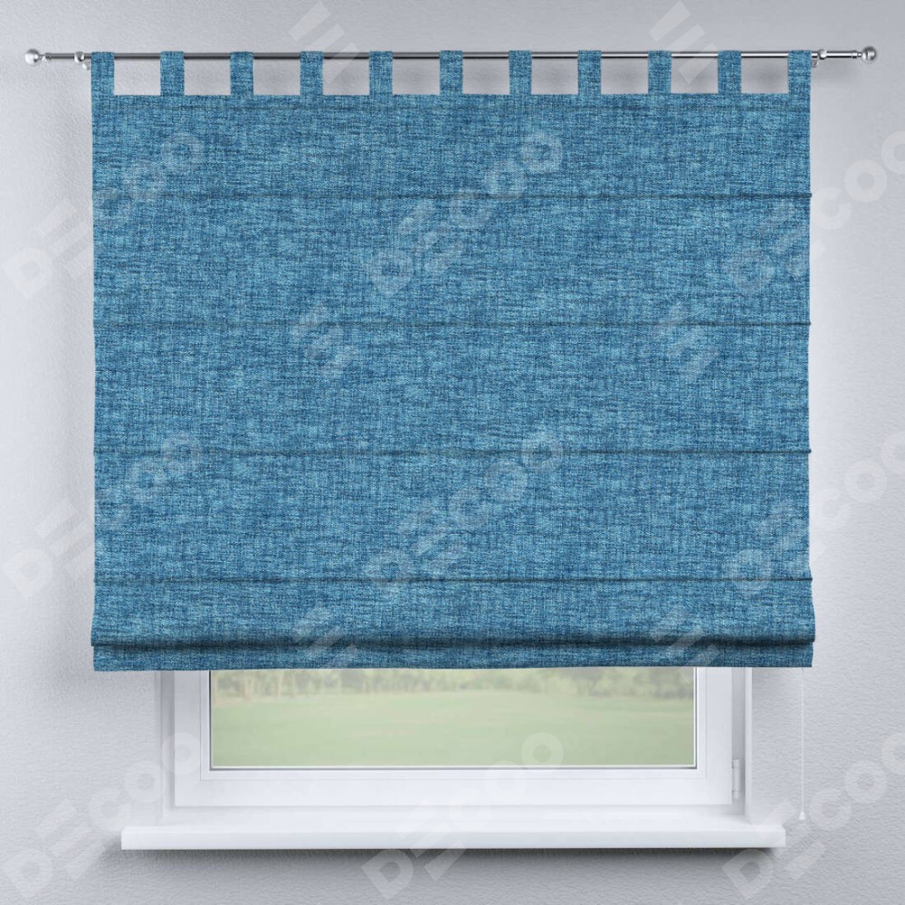 Римская штора производителя «Cortin», используется для проёма, пошита из ткани рогожка димаут джинс, артикул ткани 91026. Данная модель пошита на петлях, комплектуется на выбор круглым карнизом и подходит для монтажа на стену. Римская штора на петлях имеет простую систему регулировки высоты, отличительным преимуществом данной модели является простой способ монтажа. Достаточно повесить ее на трубу и штора готова!