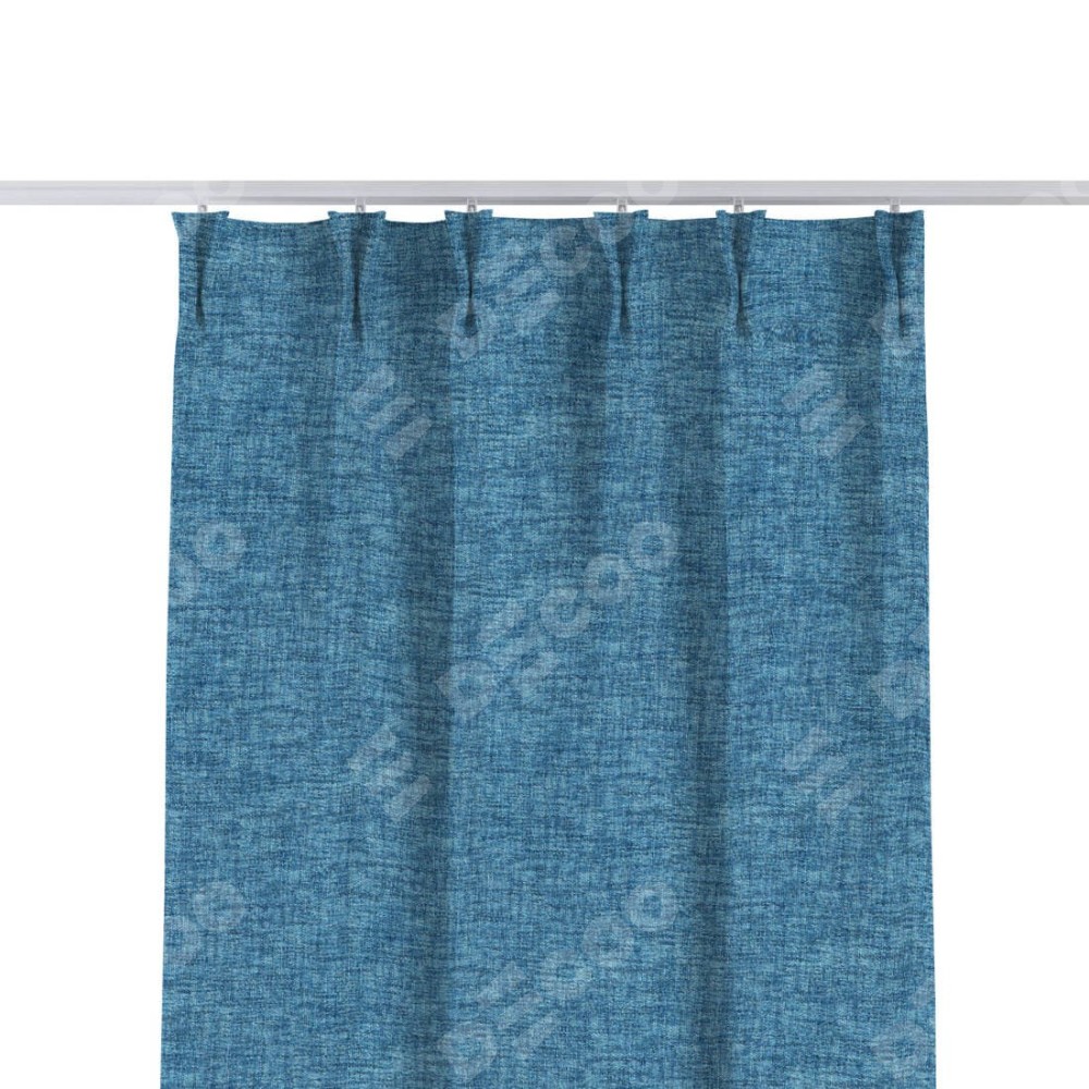 Комплект прямых штор, от производителя «Cortin», пошиты из ткани рогожка димаут джинс, артикул ткани 91026. С изнаночной стороны в верхней части штор пристрачивается шторная лента с декоративными складками «Кустик». Для создания элегантных складок прямые шторы шьются по стандарту с коэффициентом 1:2 (на 100 см. ширины проёма 200 см. ширины ткани).