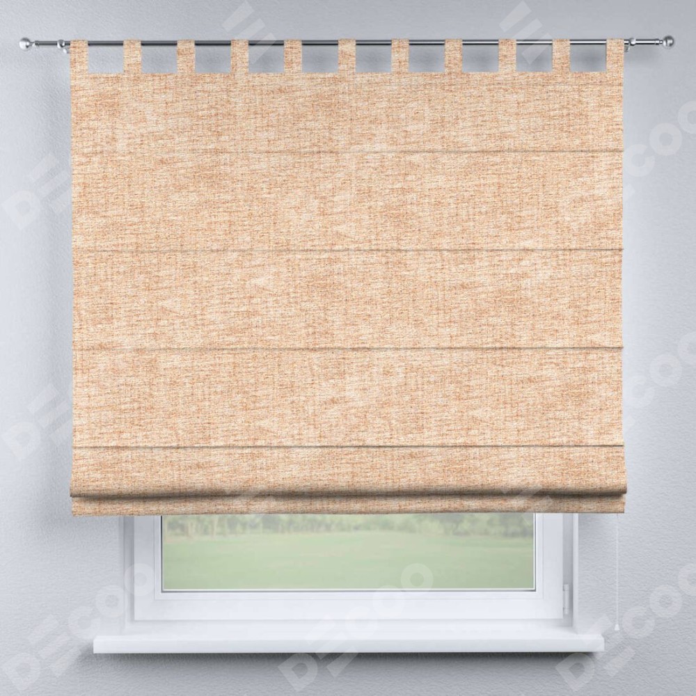 Римская штора производителя «Cortin», используется для проёма, пошита из ткани рогожка димаут персиковый, артикул ткани 91016. Данная модель пошита на петлях, комплектуется на выбор круглым карнизом и подходит для монтажа на стену. Римская штора на петлях имеет простую систему регулировки высоты, отличительным преимуществом данной модели является простой способ монтажа. Достаточно повесить ее на трубу и штора готова!