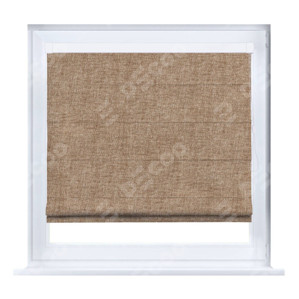 Римская штора производителя «Cortin», устанавливается на створку окна, пошита из ткани рогожка димаут светло-коричневый, артикул 91017. Штора шьётся по индивидуальным размерам, для данного типа римской шторы возможная ширина от 35 до 150 см., высота до 250 см.