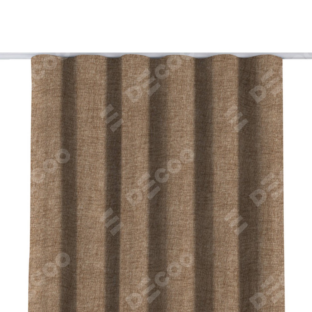 Комплект прямых штор, от производителя «Cortin», пошиты из ткани рогожка димаут светло-коричневый, артикул ткани 91017. С изнаночной стороны в верхней части штор пристрачивается шторная лента с декоративными складками «Волна». Для создания элегантных складок прямые шторы шьются по стандарту с коэффициентом 1:2 (на 100 см. ширины проёма 200 см. ширины ткани).