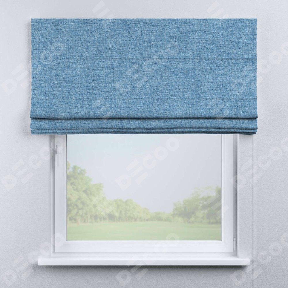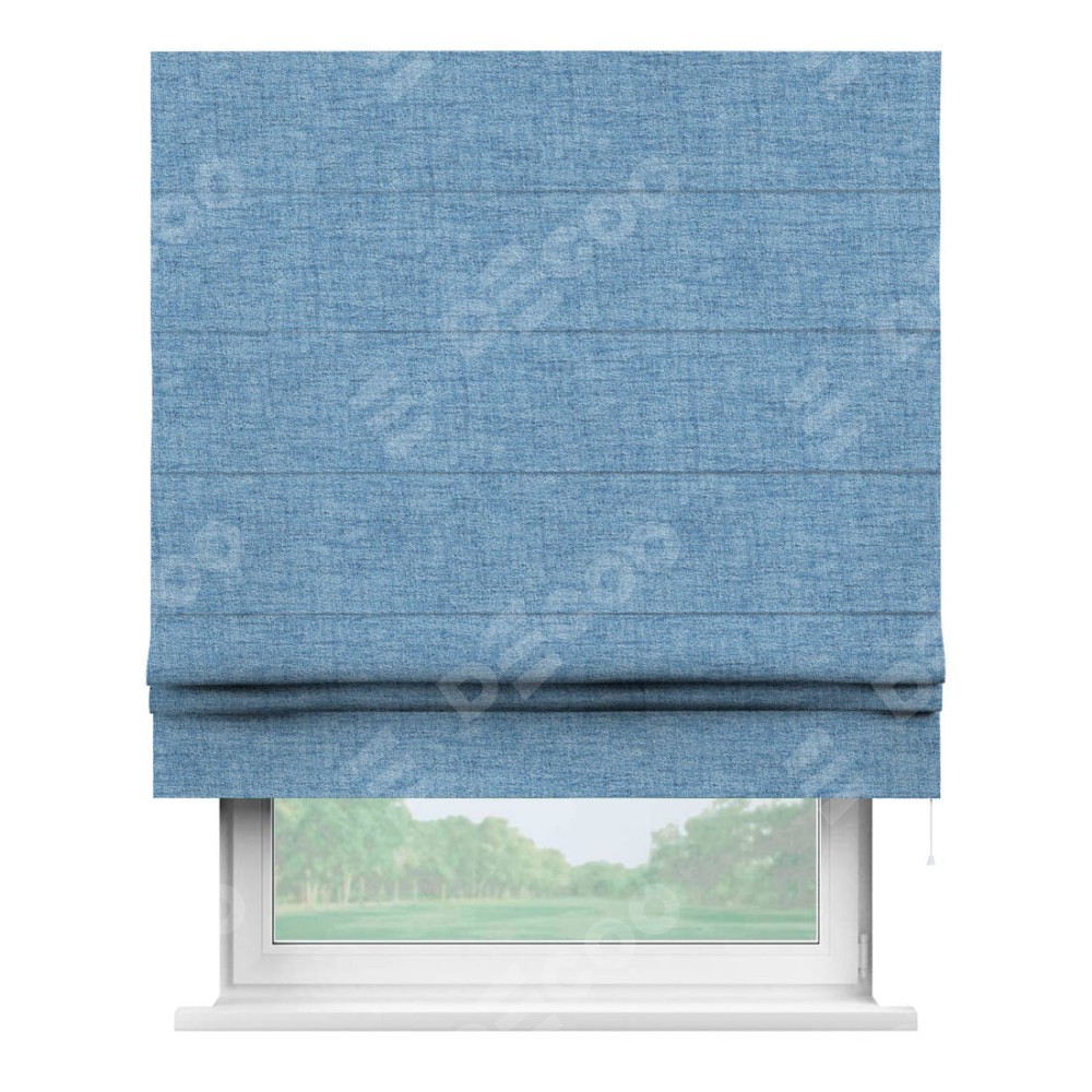 Классическая римская штора производителя «Cortin», пошита из ткани рогожка димаут голубой, артикул: 91025. Имеет универсальный механизм и подходит для монтажа: на потолок, на стену и в нишу.