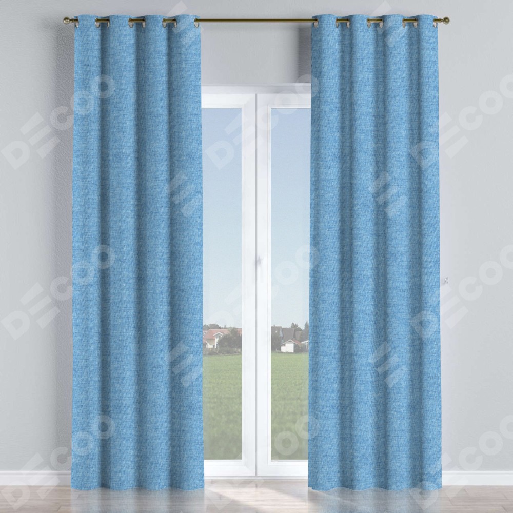 Комплект прямых штор, от производителя «Cortin», пошиты из ткани рогожка димаут голубой, артикул ткани 91025. Данная модель пошита на люверсах, комплектуется на выбор круглым карнизом и подходит для монтажа на стену или потолок. Прямые шторы на люверсах шьются по стандарту с коэффициентом 1/2 (на 100 см. ширины проёма 200 см. ширины ткани), отличительным преимуществом данной модели является простой способ монтажа. Достаточно повесить ее на трубу и штора готова!