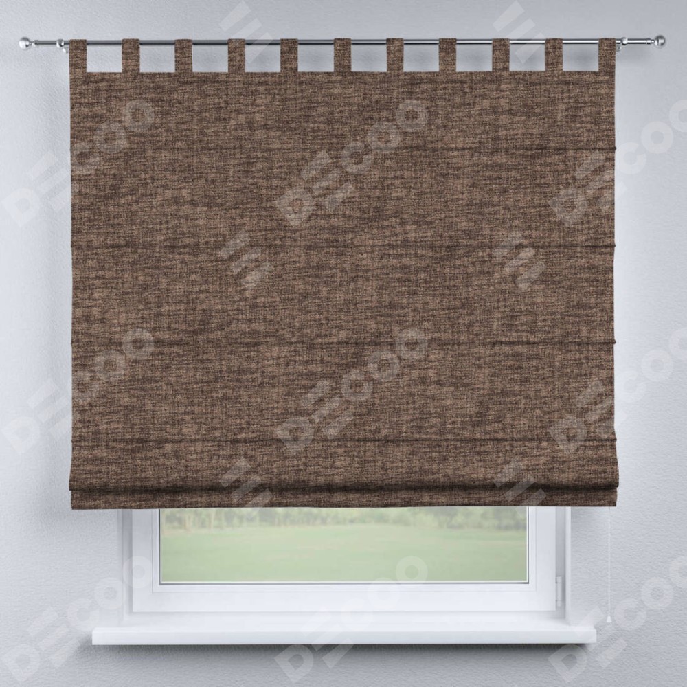 Римская штора производителя «Cortin», используется для проёма, пошита из ткани рогожка димаут коричневый, артикул ткани 91018. Данная модель пошита на петлях, комплектуется на выбор круглым карнизом и подходит для монтажа на стену. Римская штора на петлях имеет простую систему регулировки высоты, отличительным преимуществом данной модели является простой способ монтажа. Достаточно повесить ее на трубу и штора готова!