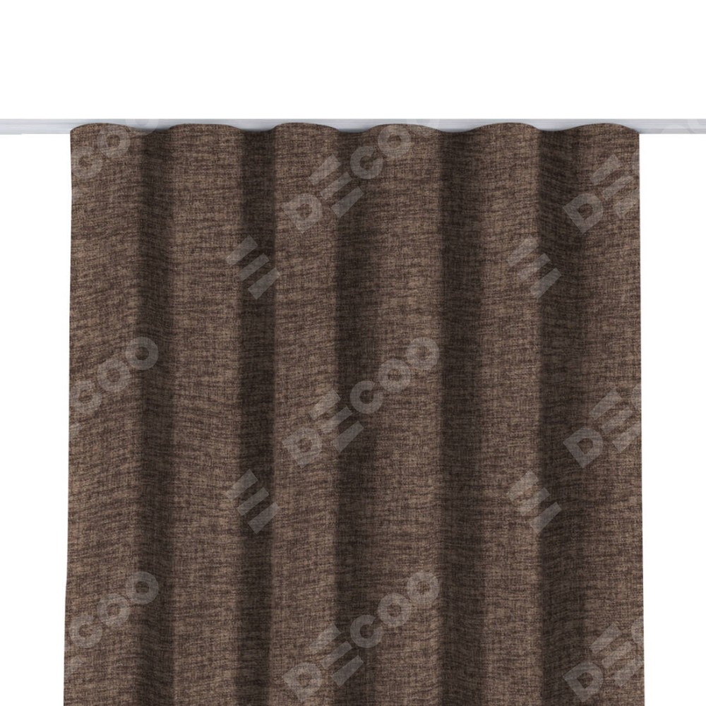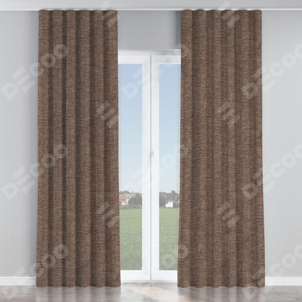 Комплект прямых штор, от производителя «Cortin», пошиты из ткани рогожка димаут коричневый, артикул ткани 91018. С изнаночной стороны в верхней части штор пристрачивается шторная лента с декоративными складками «Волна». Для создания элегантных складок прямые шторы шьются по стандарту с коэффициентом 1:2 (на 100 см. ширины проёма 200 см. ширины ткани).