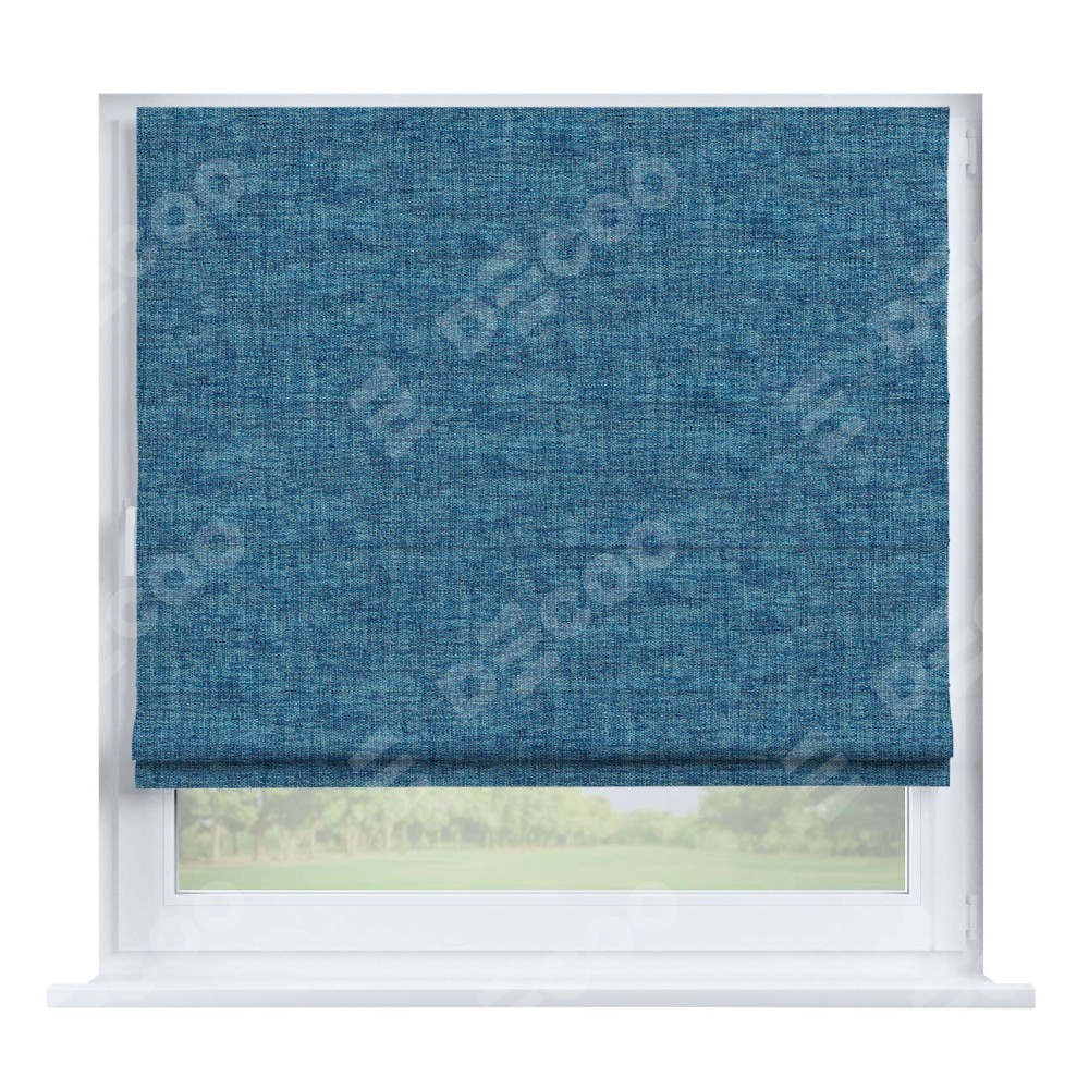 Римская штора производителя «Cortin», устанавливается на створку окна, пошита из ткани рогожка димаут лазурно-синий, артикул 91024. Штора шьётся по индивидуальным размерам, для данного типа римской шторы возможная ширина от 35 до 150 см., высота до 250 см.