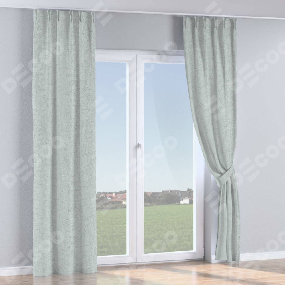 Комплект прямых штор, от производителя «Cortin», пошиты из ткани рогожка димаут серый, артикул ткани 91027. С изнаночной стороны в верхней части штор пристрачивается шторная лента с декоративными складками «Кустик». Для создания элегантных складок прямые шторы шьются по стандарту с коэффициентом 1:2 (на 100 см. ширины проёма 200 см. ширины ткани).