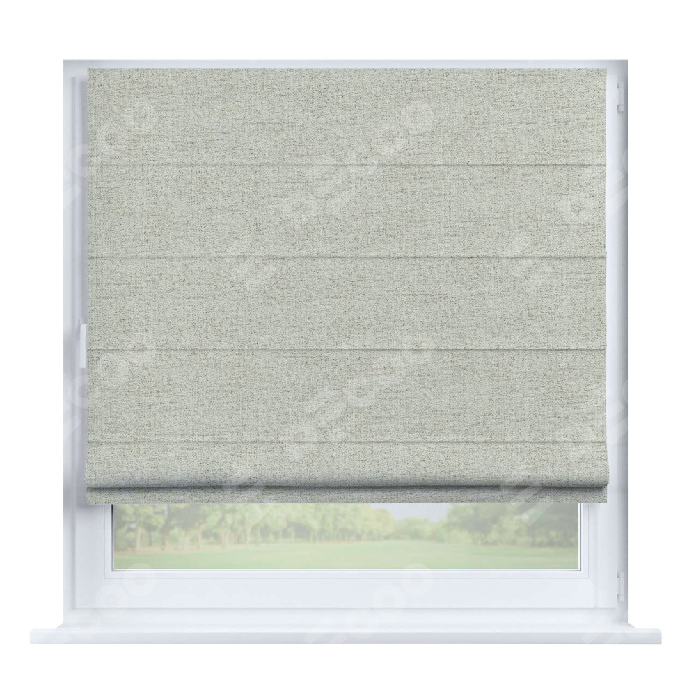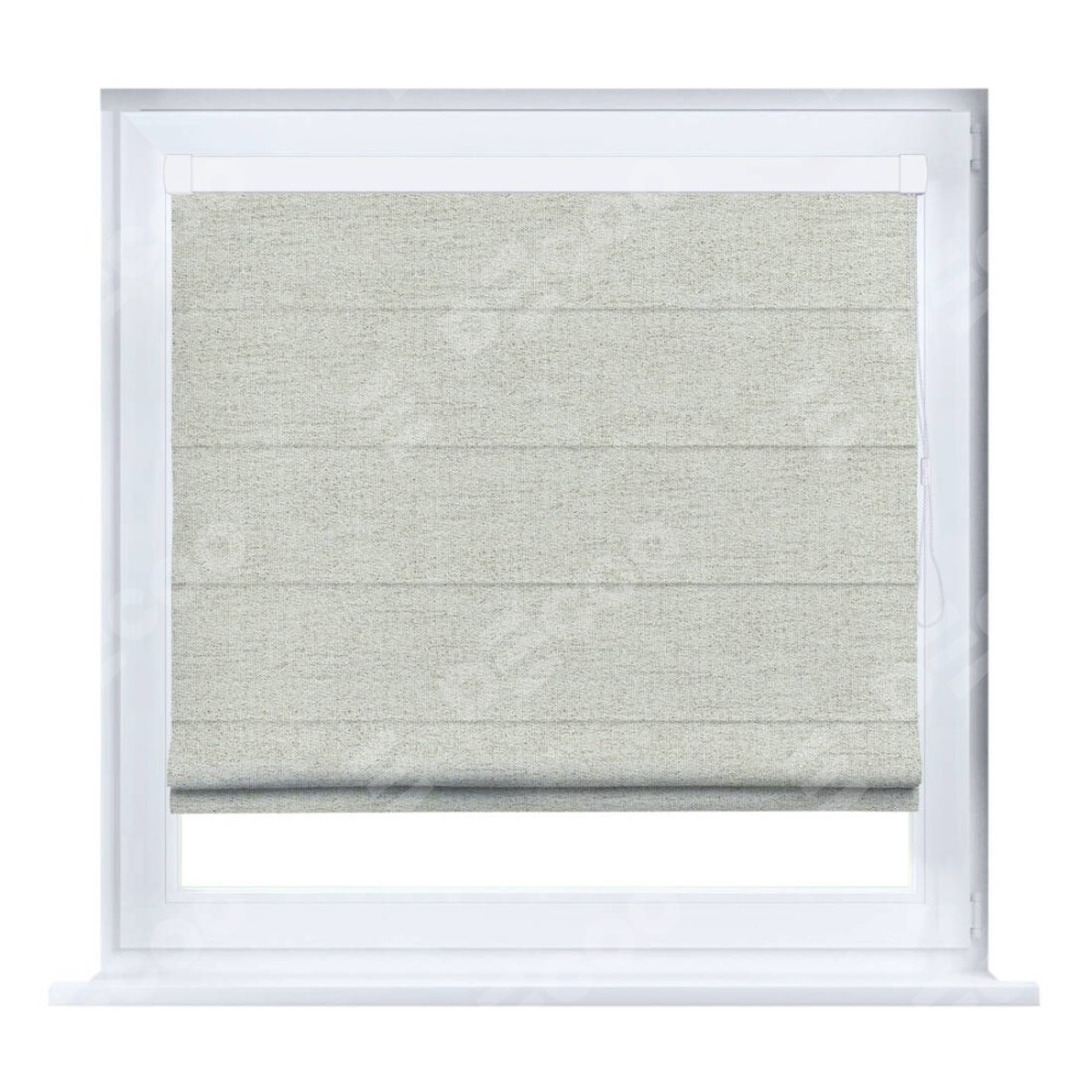 Римская штора производителя «Cortin», устанавливается на створку окна, пошита из ткани рогожка димаут серо-бежевый, артикул 91014. Штора шьётся по индивидуальным размерам, для данного типа римской шторы возможная ширина от 35 до 150 см., высота до 250 см.