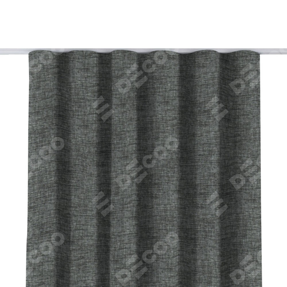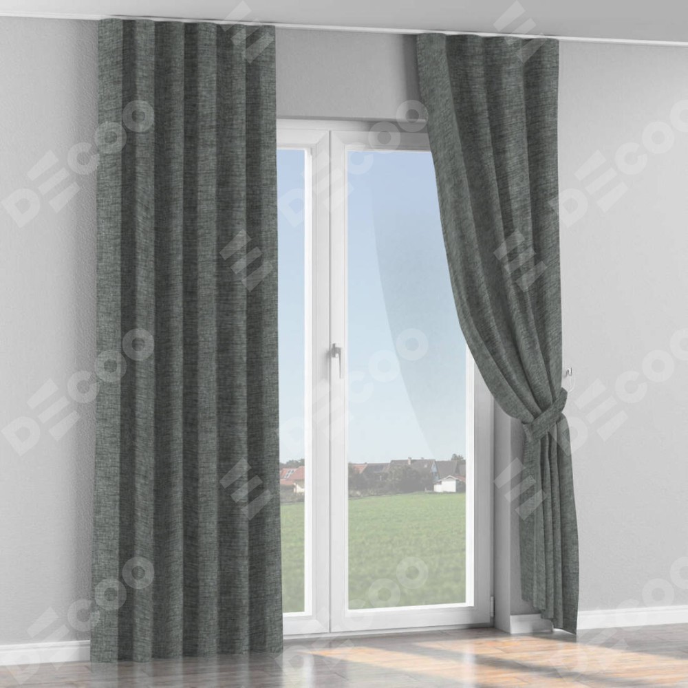 Комплект прямых штор, от производителя «Cortin», пошиты из ткани рогожка димаут тёмно-серый, артикул ткани 91029. С изнаночной стороны в верхней части штор пристрачивается шторная лента с декоративными складками «Волна». Для создания элегантных складок прямые шторы шьются по стандарту с коэффициентом 1:2 (на 100 см. ширины проёма 200 см. ширины ткани).